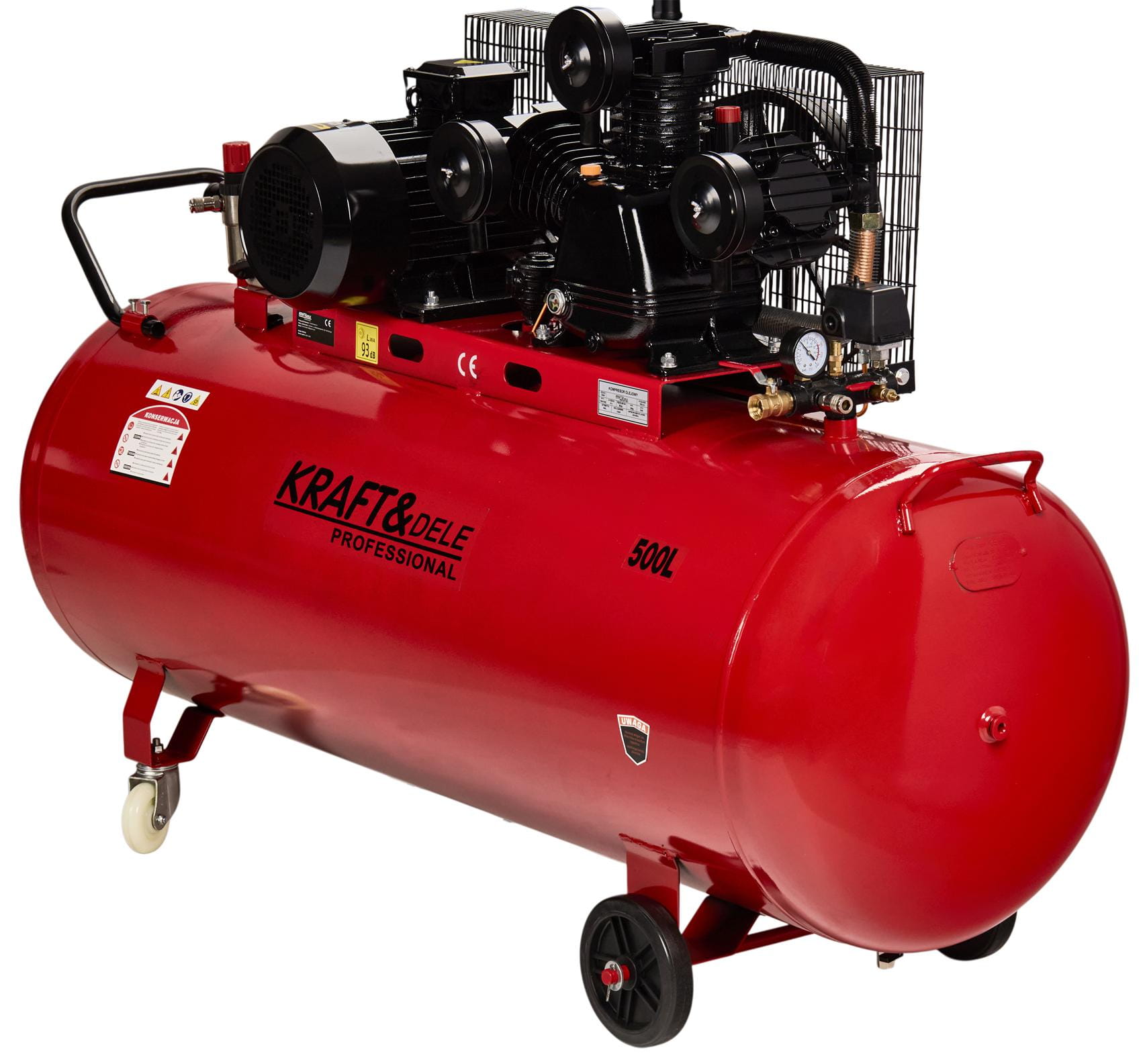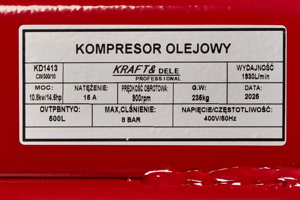 KD1413 to trzyłokowy kompresor olejowy z zasilaniem trójfazowym 400V, przeznaczony do ciągłej pracy w środowiskach przemysłowych — warsztatach, zakładach produkcyjnych i profesjonalnych garażach. Zbiornik o pojemności 500 litrów w połączeniu z wydajnością efektywną 1395 L/min zapewnia stabilne zasilanie powietrzem dla wielu narzędzi jednocześnie bez częstych przerw na uzupełnienie ciśnienia.