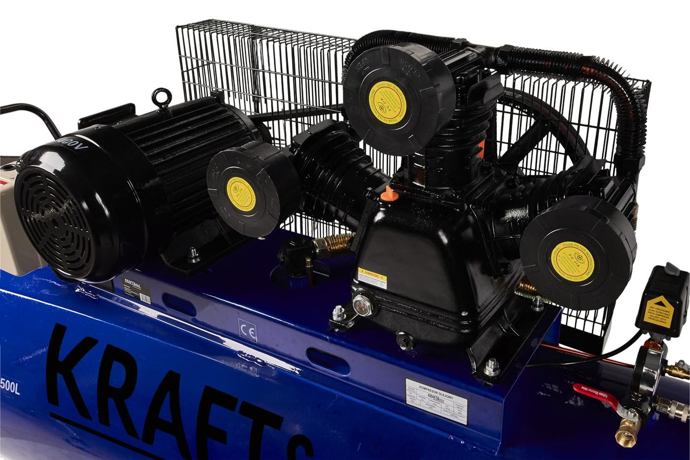 Kompresor Olejowy 500L / 3 tłoki / 400V KD4062 / KD4062 / KRAFT&DELE to kompresor olejowy do intensywnych prac warsztatowych, w których przydaje się duży zbiornik, solidna konstrukcja i praktyczne rozwiązania w obsłudze. Jeśli szukasz sprężarki KD4062 do zasilania pneumatyki oraz typowych zadań takich jak czyszczenie, przedmuchiwanie i malowanie, ten model będzie rozsądnym wyborem do pracy w garażu, warsztacie i firmie.