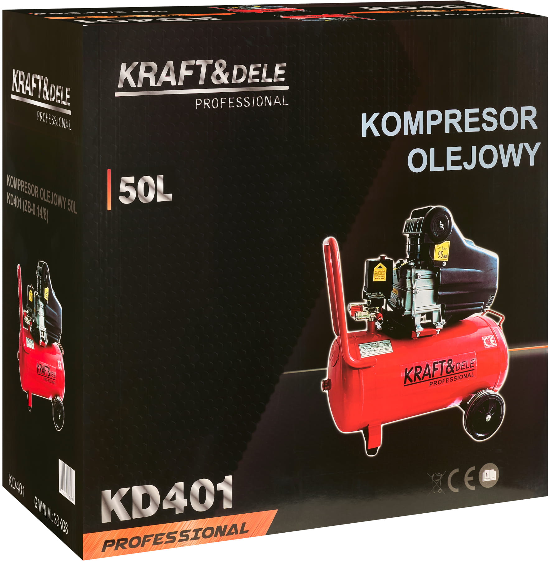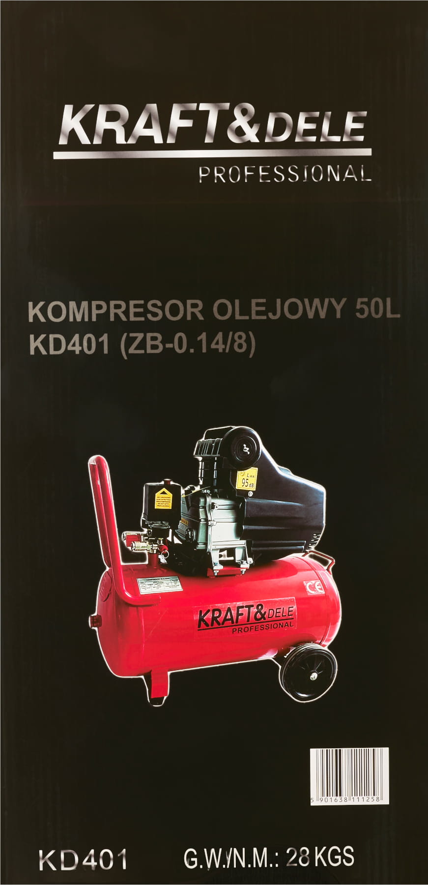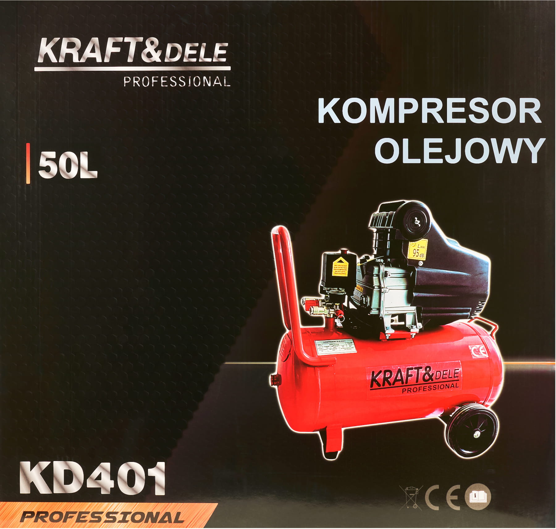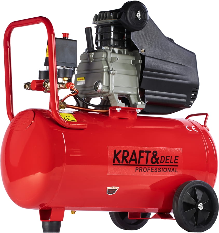 KD401 to jednotłokowy kompresor powietrza z olejowym smarowaniem, wyposażony w metalowy zbiornik o pojemności 50 litrów. Urządzenie przeznaczone do zastosowań warsztatowych i garażowych, gdzie wymagane jest stabilne ciśnienie robocze i ciągła praca narzędzi pneumatycznych.
