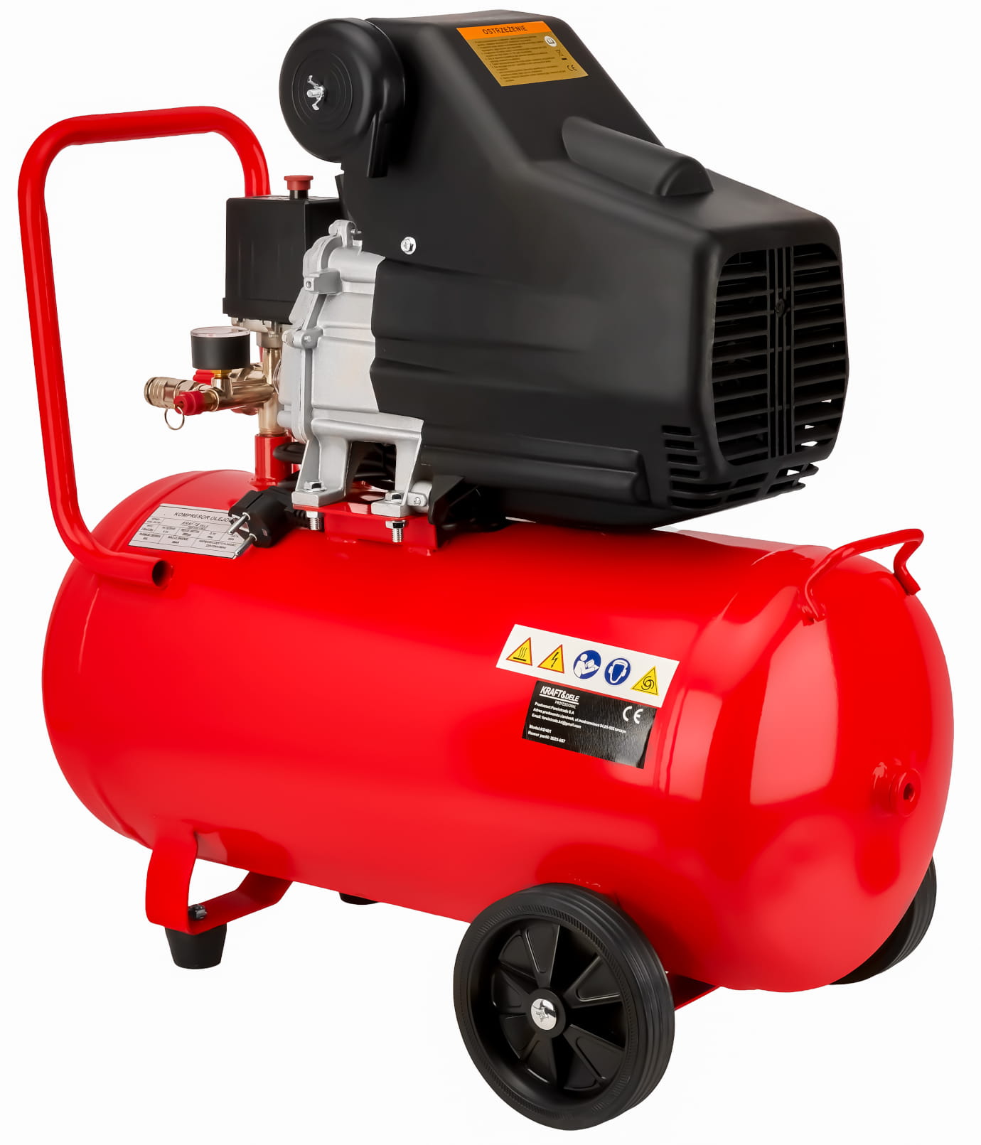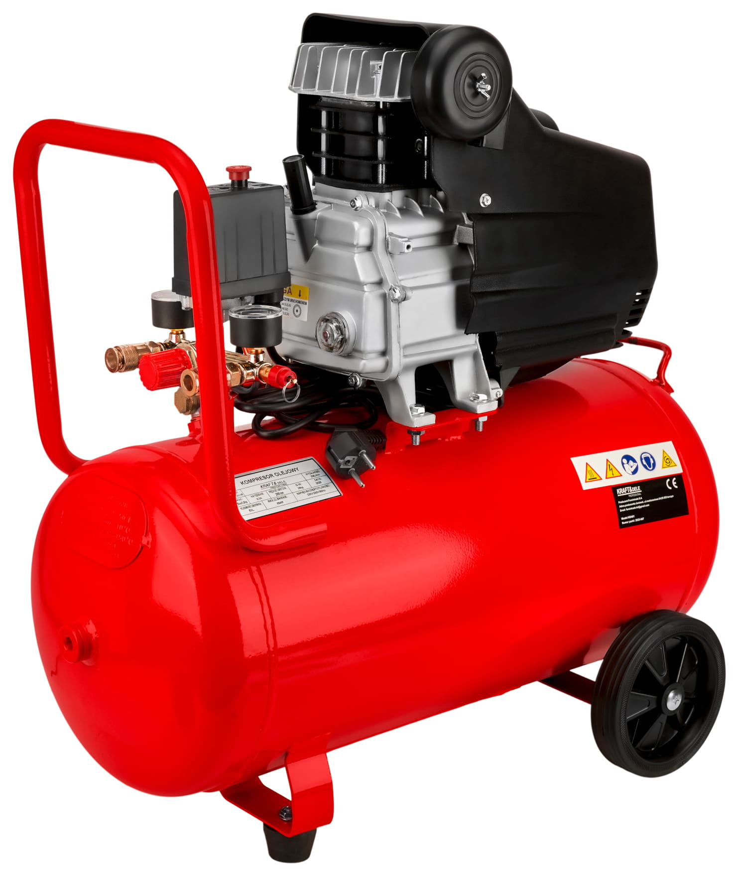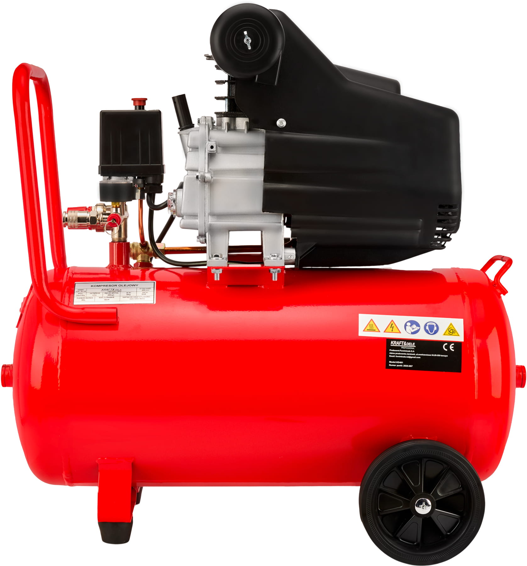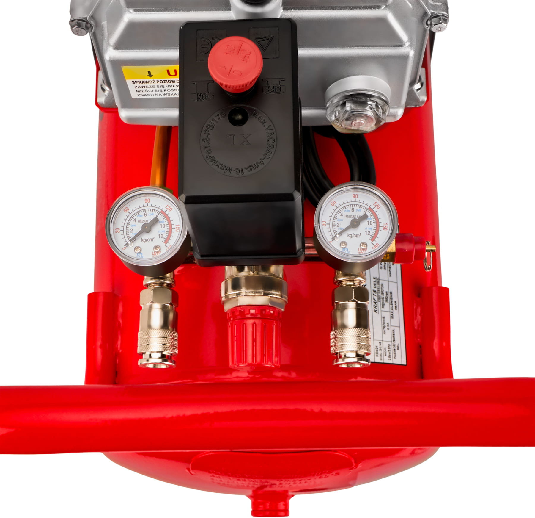 KD401 to jednotłokowy kompresor powietrza z olejowym smarowaniem, wyposażony w metalowy zbiornik o pojemności 50 litrów. Urządzenie przeznaczone do zastosowań warsztatowych i garażowych, gdzie wymagane jest stabilne ciśnienie robocze i ciągła praca narzędzi pneumatycznych.