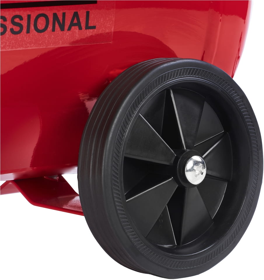 Waga 28 kg przy zbiorniku 50 L plasuje KD401 w kategorii urządzeń mobilnych. Duże koła transportowe oraz ergonomiczny uchwyt umożliwiają przemieszczanie kompresora między stanowiskami pracy bez konieczności używania dodatkowego sprzętu. Metalowy zbiornik odporny jest na uszkodzenia mechaniczne i korozję.