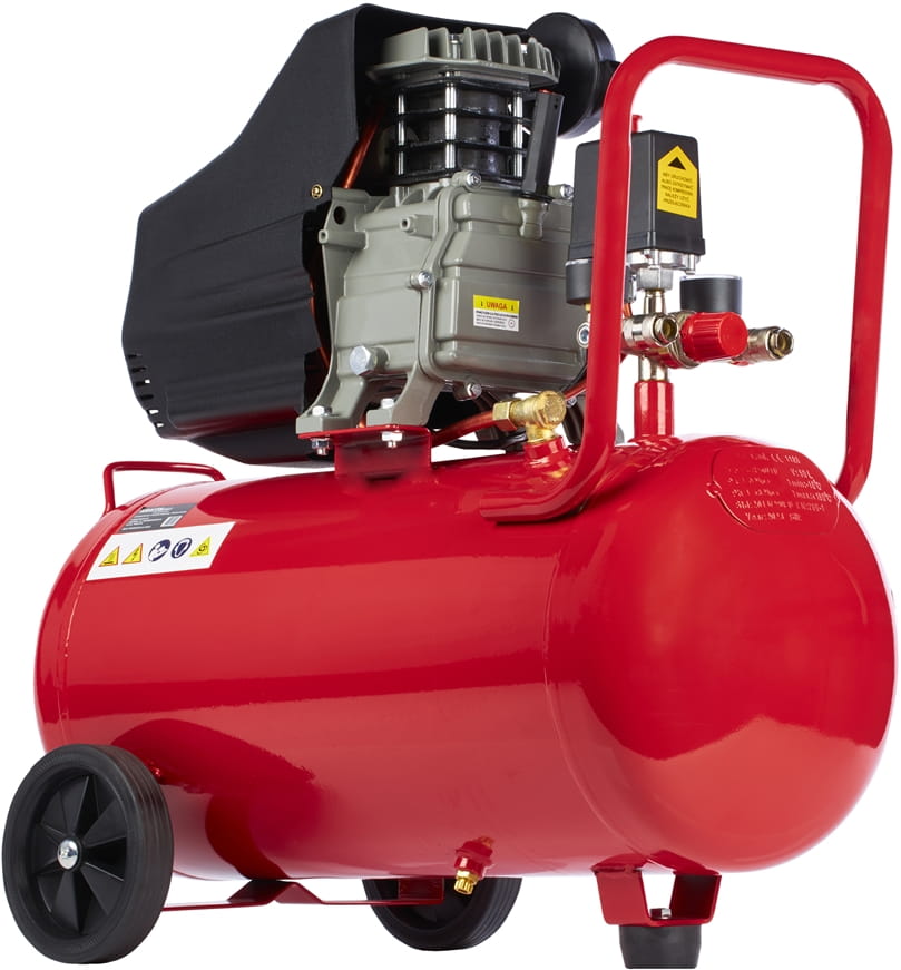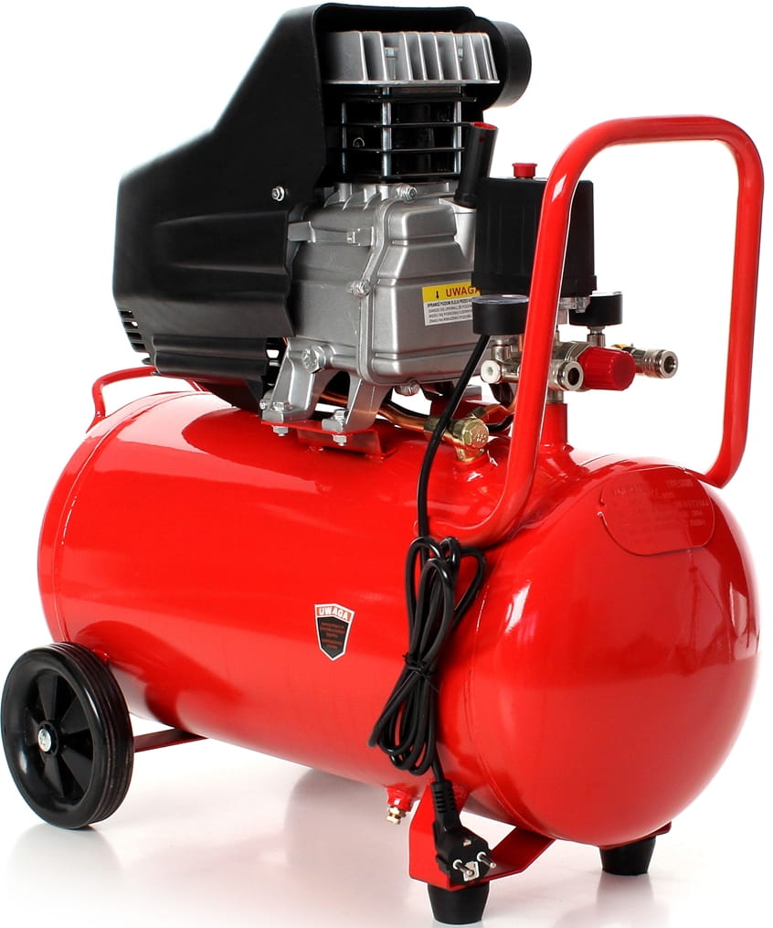 Zbiornik o pojemności 50 litrów pozwala na zgromadzenie wystarczającej rezerwy sprężonego powietrza, dzięki czemu narzędzia pneumatyczne pracują bez przerw spowodowanych zbyt częstym włączaniem się silnika. Maksymalne ciśnienie 8 bar odpowiada wymaganiom większości pneumatycznych narzędzi warsztatowych — kluczy udarowych, pistoletów do malowania czy szlifierek.