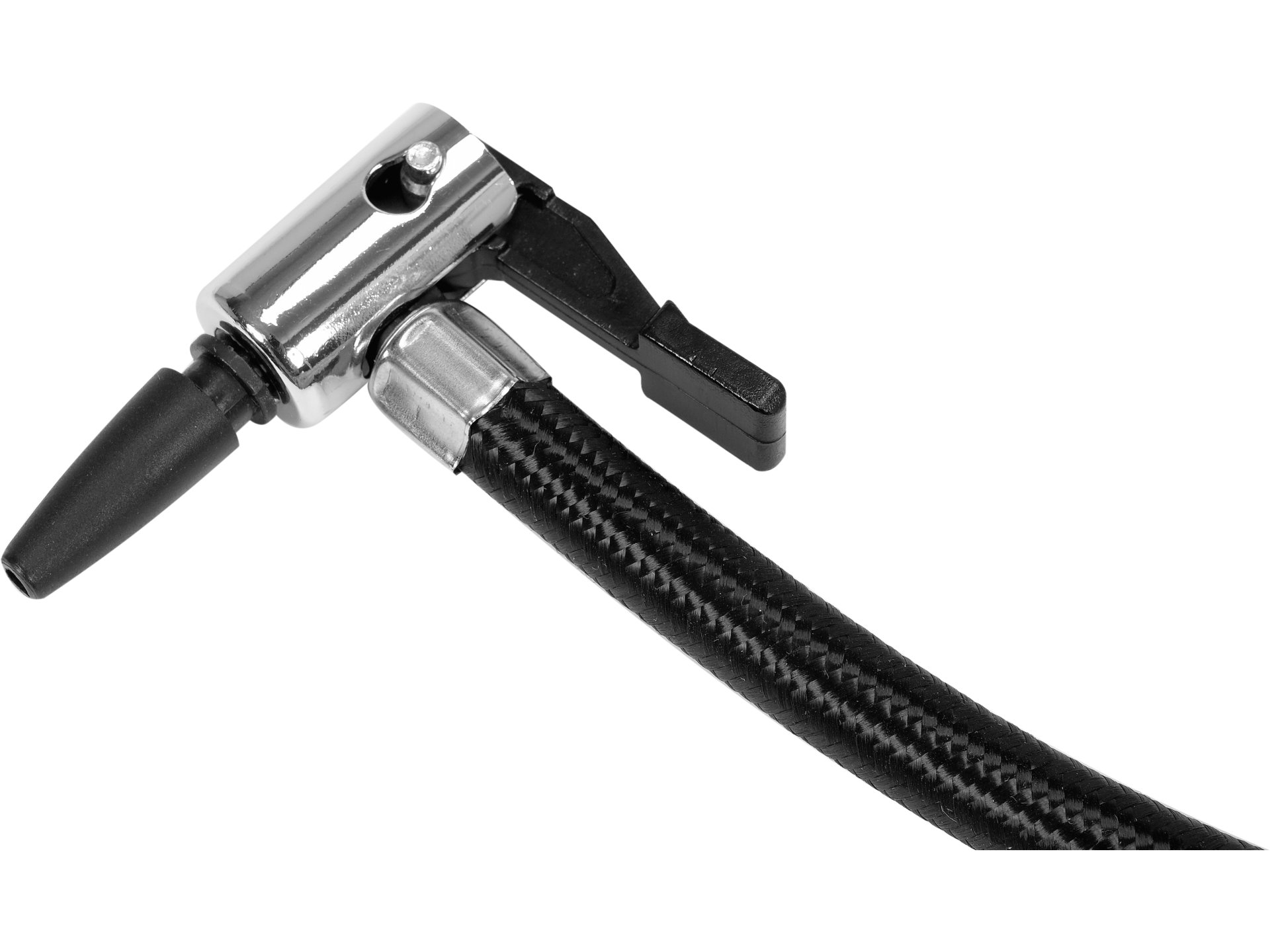 Zintegrowana latarka LED umożliwia pompowanie kół po zmroku lub w słabo oświetlonych miejscach, takich jak garaże podziemne czy parkingi. Oświetlenie ułatwia lokalizację zaworu i kontrolę procesu pompowania.