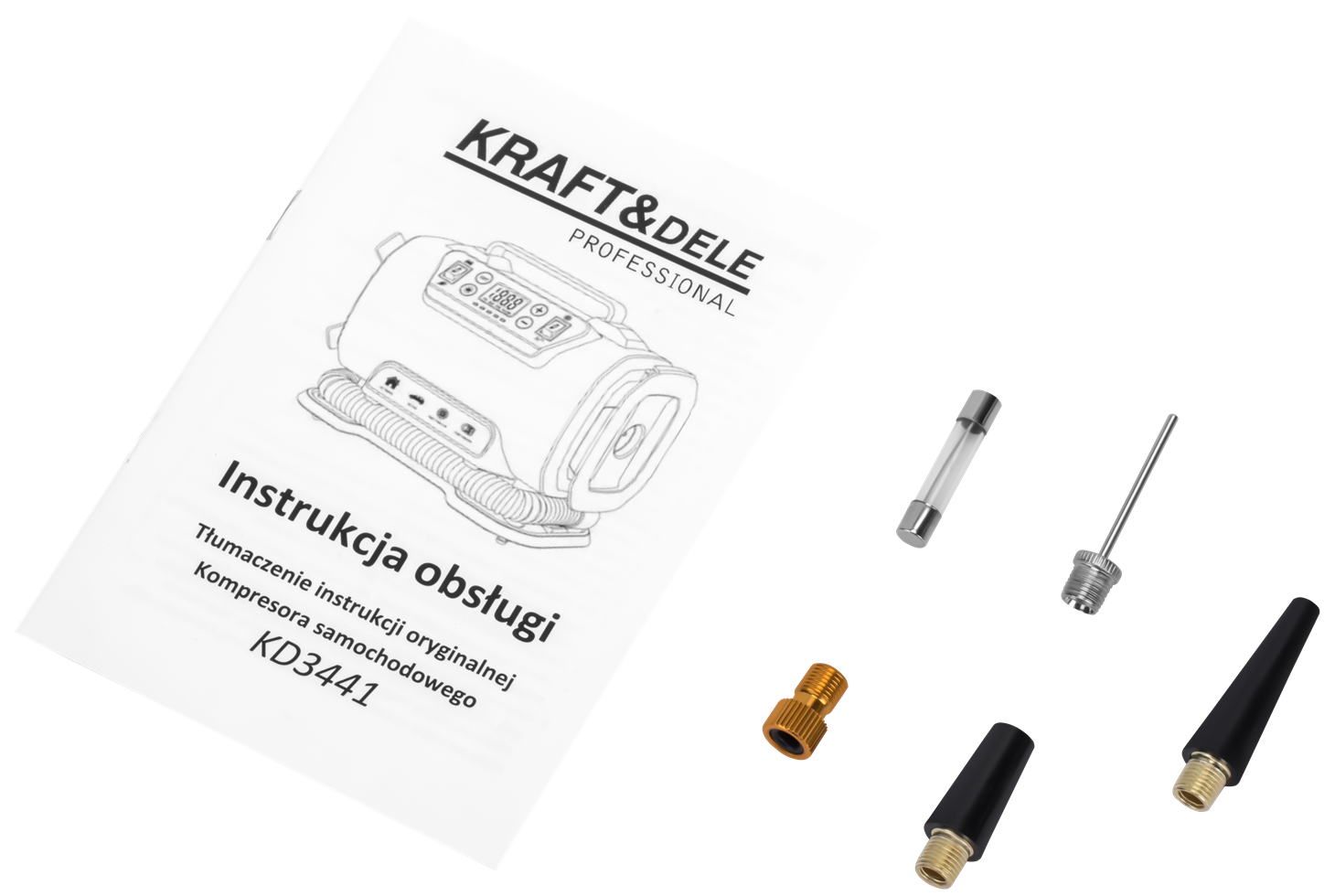 Kompresor KD3441, końcówka do piłek, końcówka do materacy, instrukcja obsługi w języku polskim. Gwarancja producenta: 12 miesięcy.