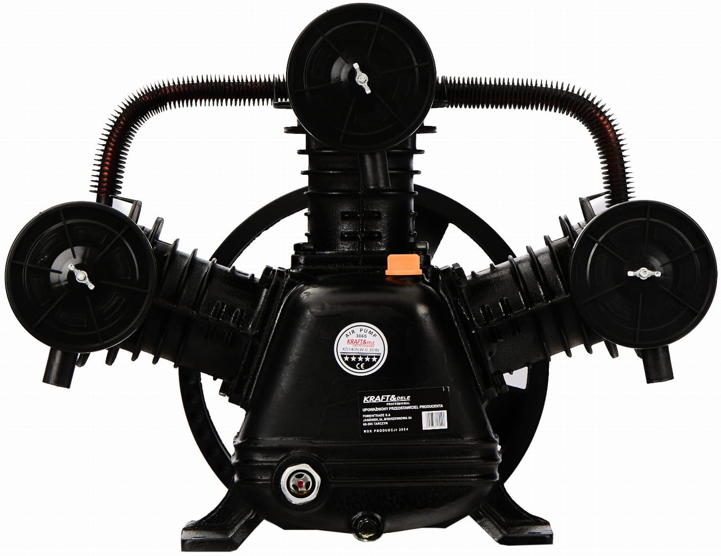 KD1405 to przemysłowa głowica (pompa) kompresora z układem trzech cylindrów, przeznaczona do zabudowy w sprężarkach warsztatowych i przemysłowych. Układ trzech rozstawionych tłoków o średnicy 65 mm w połączeniu z rozbudowanym systemem chłodzenia powietrznego pozwala na długotrwałą pracę ciągłą bez ryzyka przegrzania.
