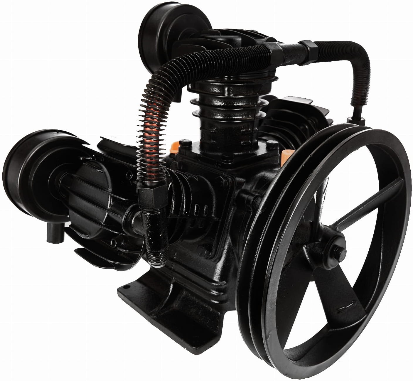 Podana moc 3 kW to wartość minimalna — silnik napędowy powinien mieć moc co najmniej równą tej wartości. W przypadku zastosowań z częstymi rozruchami pod obciążeniem lub długotrwałą pracą ciągłą zaleca się silnik o mocy 3,5–4 kW, aby zapewnić odpowiedni zapas mocy i nie przeciążać uzwojeń podczas rozruchu. Głowica współpracuje z silnikami elektrycznymi za pośrednictwem napędu pasowego — dobór przekładni pasowej powinien uwzględniać zalecaną prędkość obrotową wału korbowego podaną przez producenta.