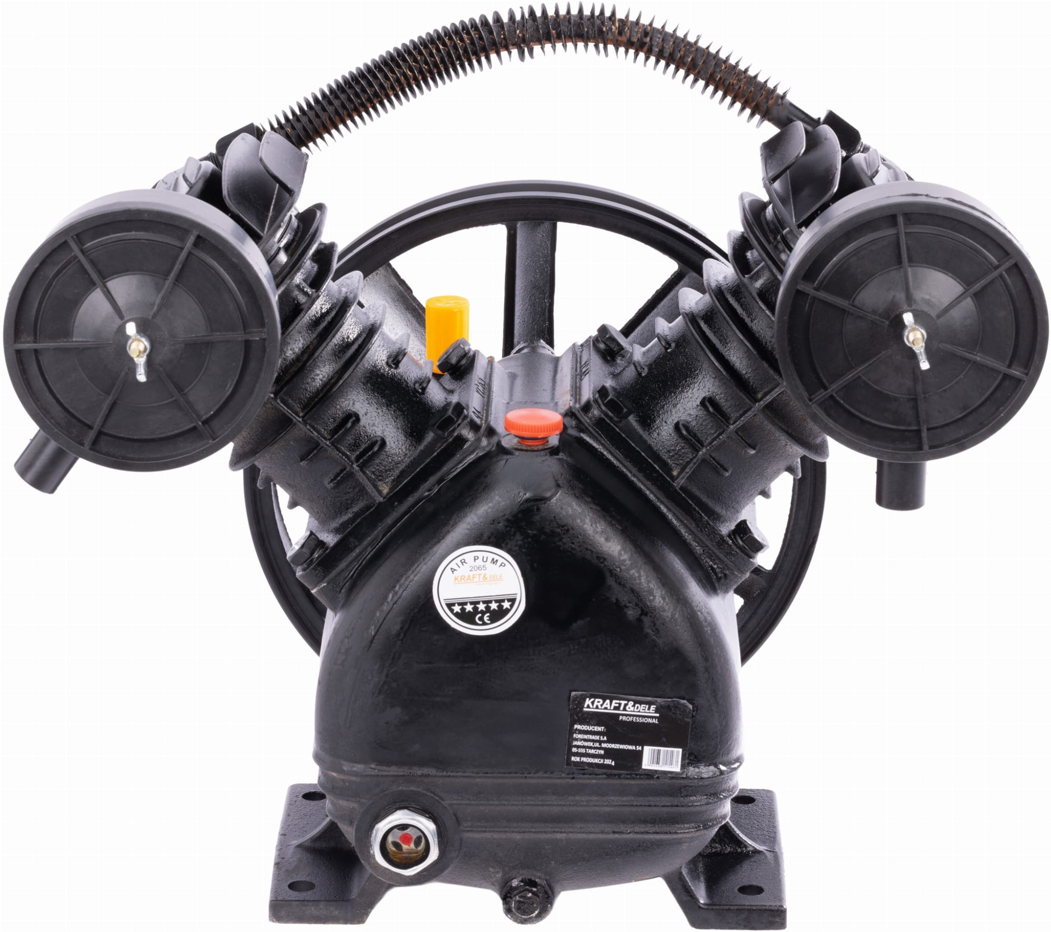 KD1403 to dwutłokowa sprężarka powietrza z smarowaniem olejowym, przeznaczona do intensywnej eksploatacji w warunkach warsztatowych i przemysłowych. Dwa żeliwne cylindry o średnicy 80 mm oraz wydajność 480 L/min pozwalają na zasilanie wymagających narzędzi pneumatycznych w trybie ciągłym.