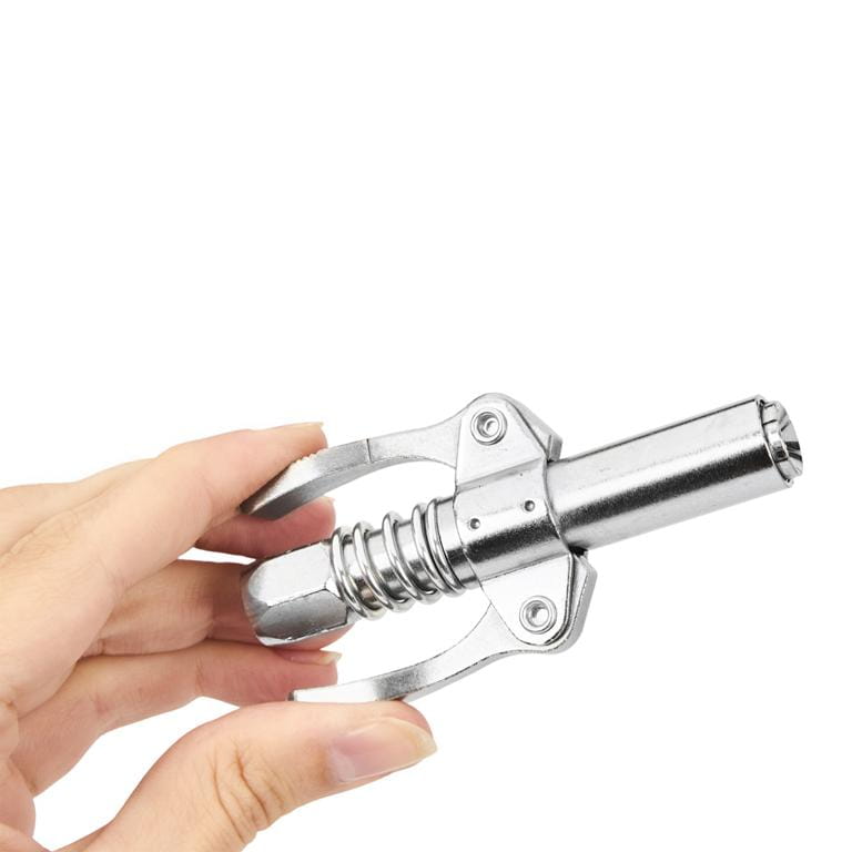 Sześć szczęk zaciskowych równomiernie rozkłada siłę docisku na całym obwodzie smarowniczki. Dzięki temu połączenie jest pewne nawet przy wysokim ciśnieniu — ryzyko przypadkowego odpięcia podczas smarowania jest minimalne.
