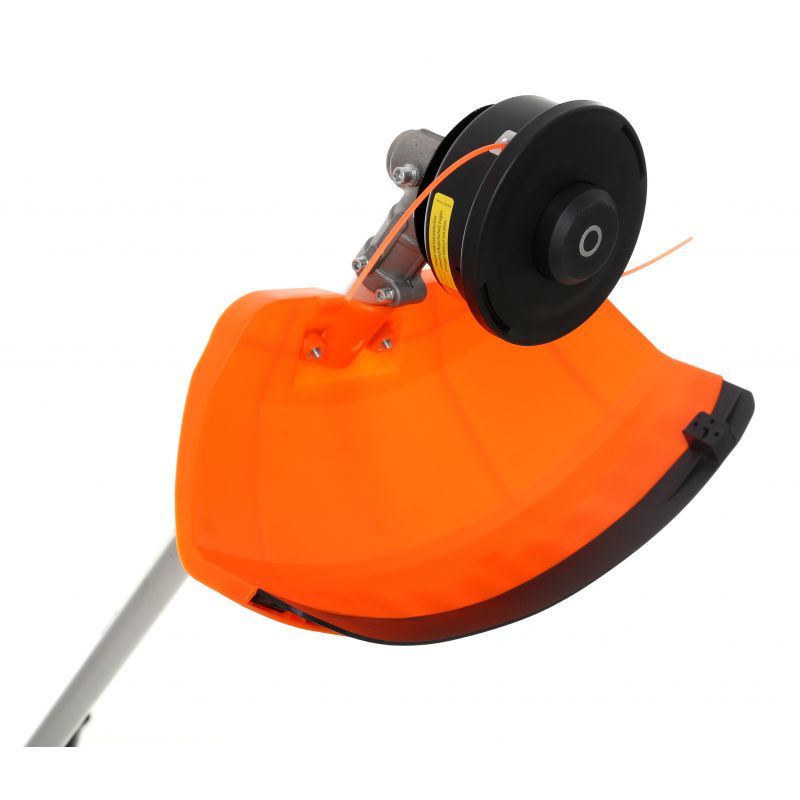 Sprzęgło odśrodkowe przenosi napęd na wał dopiero po przekroczeniu progowych obrotów, co chroni silnik podczas rozruchu i biegu jałowego. Grube okładziny sprzęgła ograniczają poślizg i zapewniają pełne przeniesienie momentu obrotowego. Przekładnia ślimakowa z hartowanymi zębatkami i pierścieniem spiralnym zapobiega nawijaniu się roślinności na głowicę.