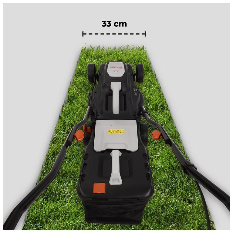 Zakres 25–65 mm pozwala dopasować cięcie do kondycji trawnika i efektu, jaki chcesz uzyskać.