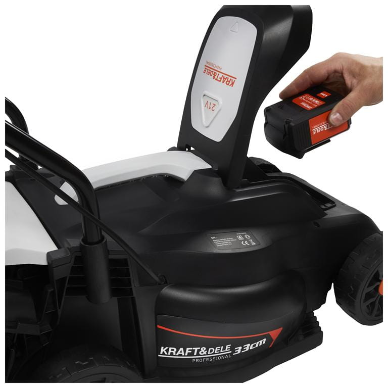 KD5550 to kosiarka akumulatorowa zasilana systemem 21V z akumulatorem o pojemności 4Ah. Przeznaczona do koszenia trawników przydomowych i działkowych — bez emisji spalin i bez konieczności dostępu do gniazdka elektrycznego podczas pracy. W zestawie znajdują się akumulator oraz ładowarka.