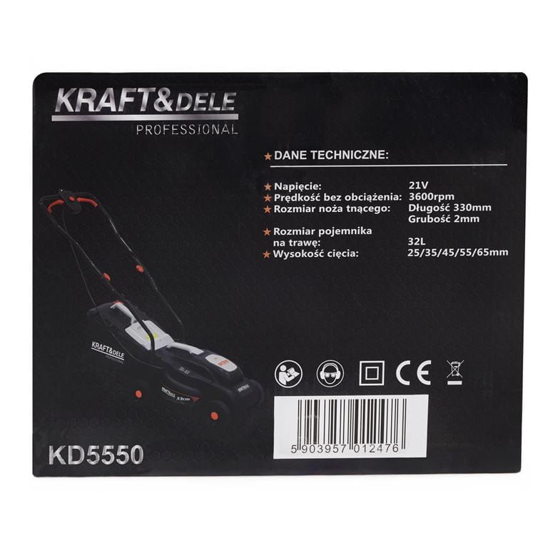 Kosiarka akumulatorowa KD5550 sprzedawana jest w komplecie z akumulatorem 21V 4Ah, ładowarką oraz instrukcją obsługi w języku polskim. Zestaw gotowy do użycia bez konieczności dokupowania dodatkowych elementów zasilających.
