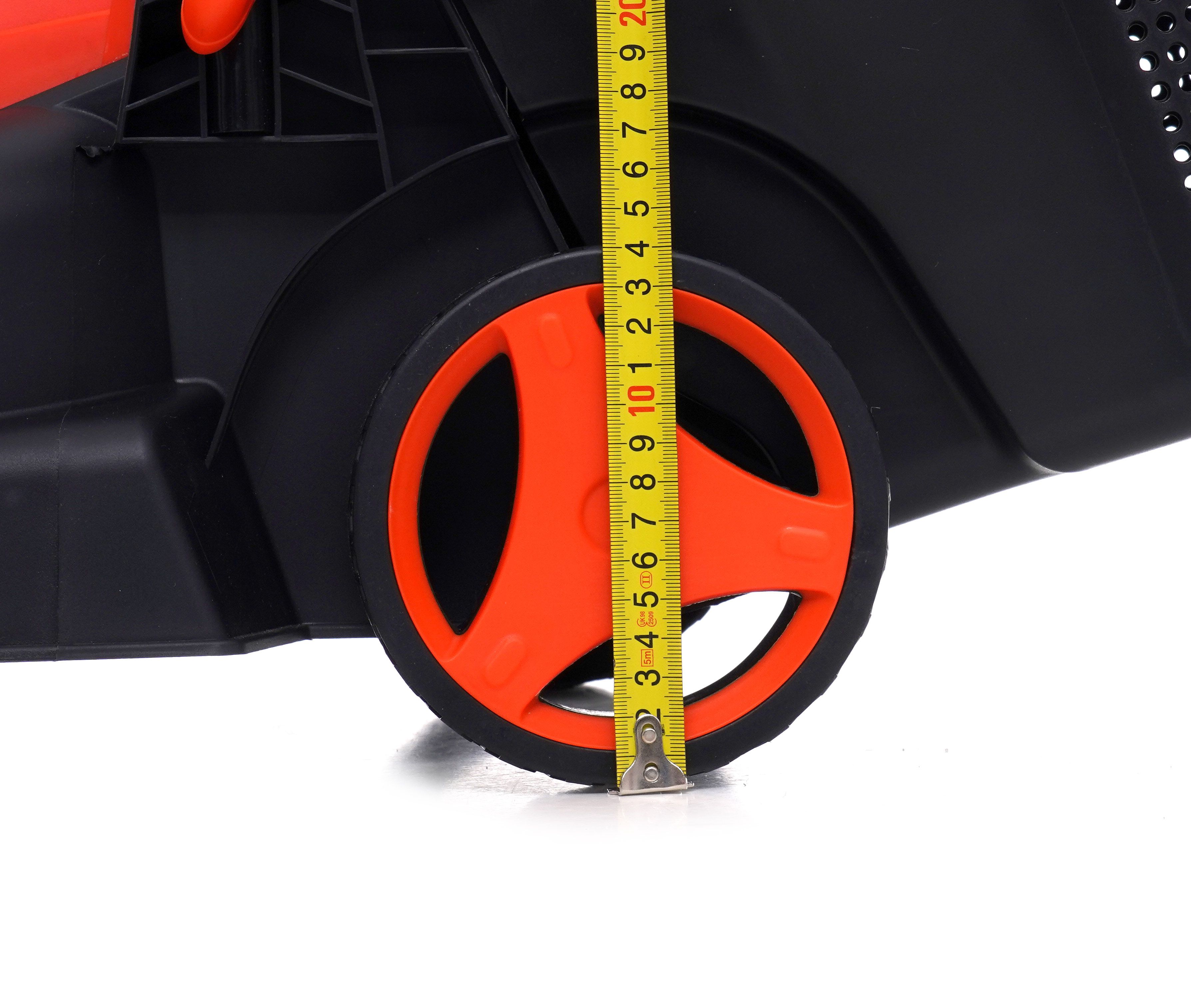 Obudowa z tworzywa sztucznego i masa ok. 9 kg pomagają prowadzić kosiarkę elektryczną pewnie i bez zbędnego wysiłku.