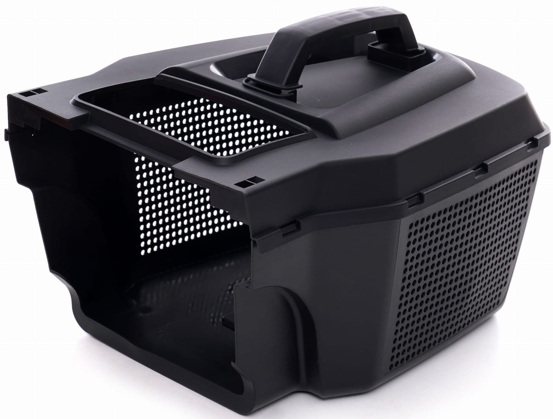 Plastikowy kosz o pojemności 30 litrów zbiera skoszoną trawę, eliminując konieczność jej ręcznego grabienia po każdym koszeniu. Uchwyt ułatwia opróżnianie kosza bezpośrednio do worka lub kompostownika. Pojemność 30L jest wystarczająca do obsługi mniejszych działek bez częstego przerywania pracy.