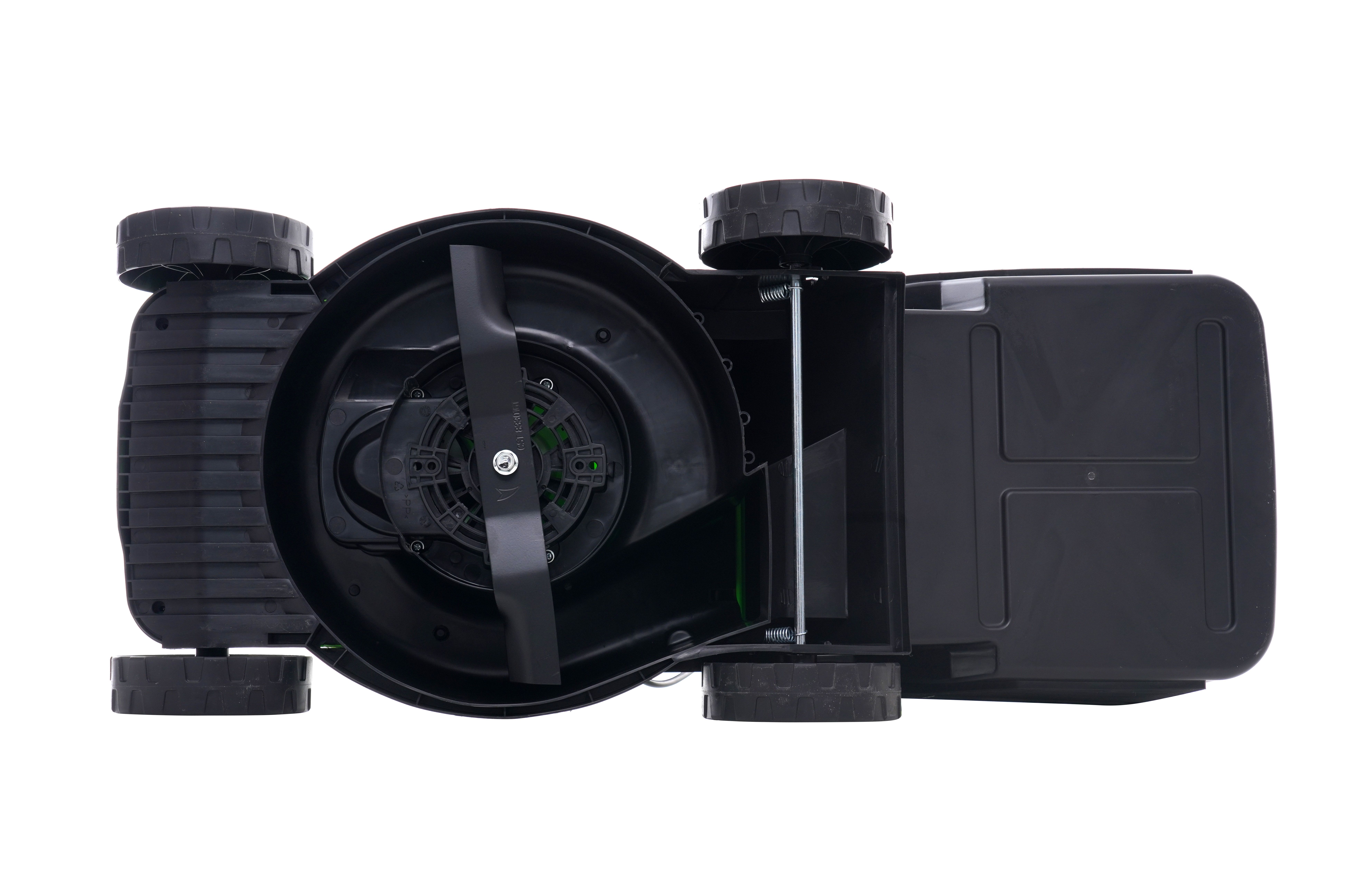 Obudowa z tworzywa sztucznego i masa 7,3 kg ułatwiają prowadzenie oraz przenoszenie kosiarki elektrycznej.