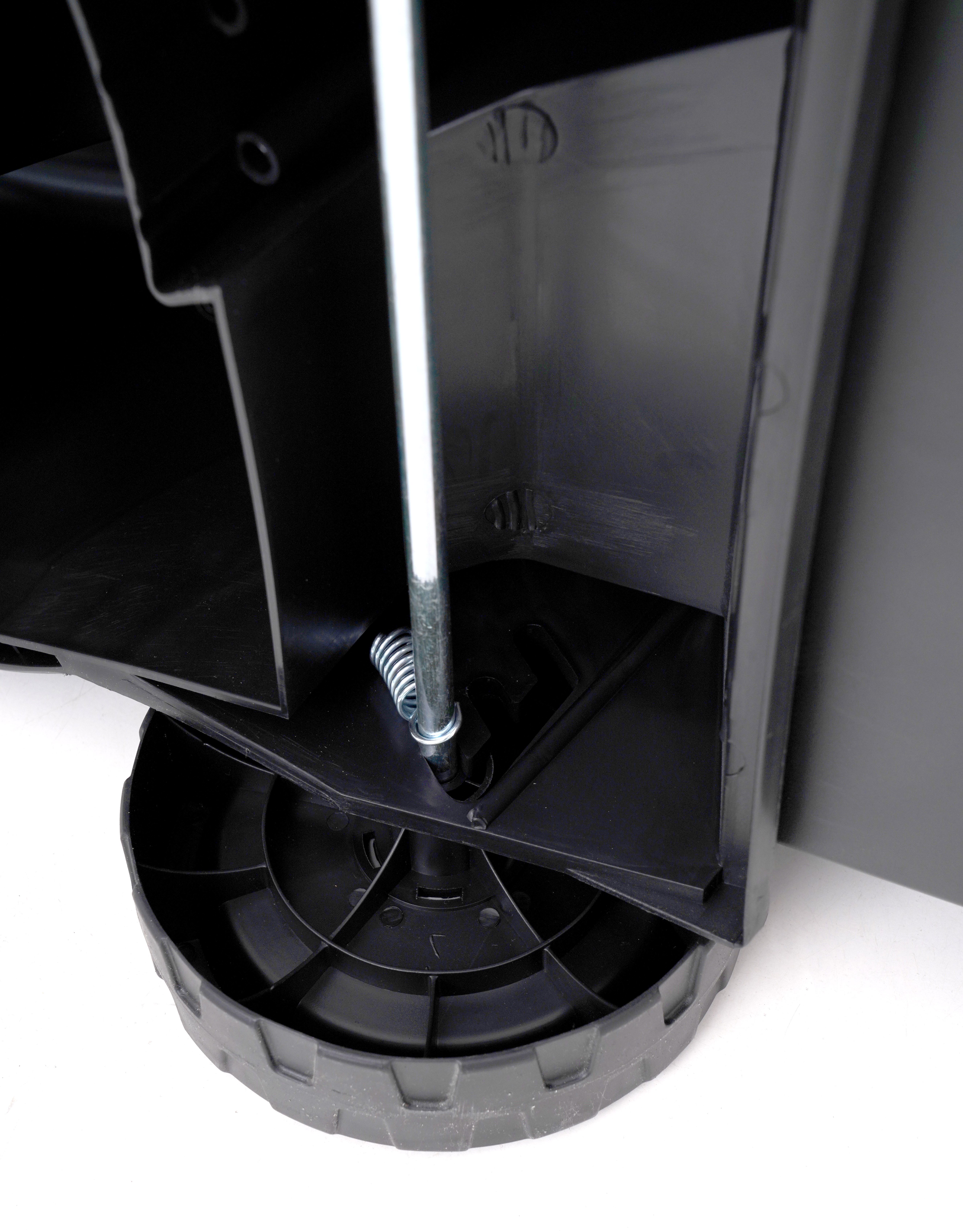 Przemyślany kosz z uchwytem usprawnia opróżnianie i utrzymanie porządku podczas pracy na trawniku.
