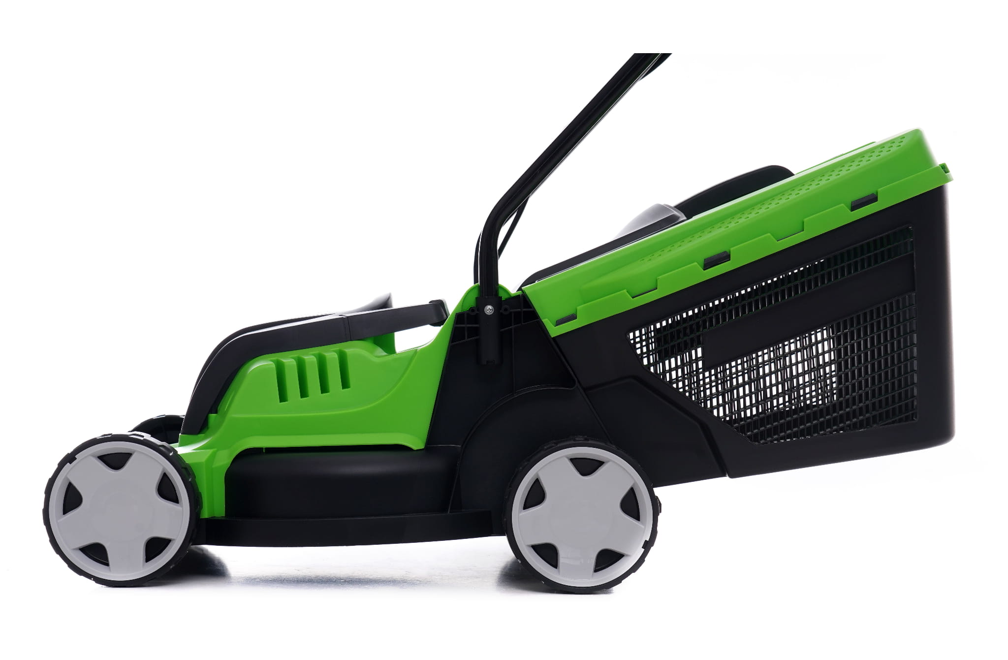 Elektryczna kosiarka z silnikiem o mocy 2200W przeznaczona do pielęgnacji przydomowych ogrodów i działek o umiarkowanej powierzchni. Kompaktowa obudowa z tworzywa sztucznego, trójstopniowa regulacja wysokości koszenia oraz pojemny kosz na skoszoną trawę pozwalają na wygodną i regularną pracę bez potrzeby tankowania paliwa.