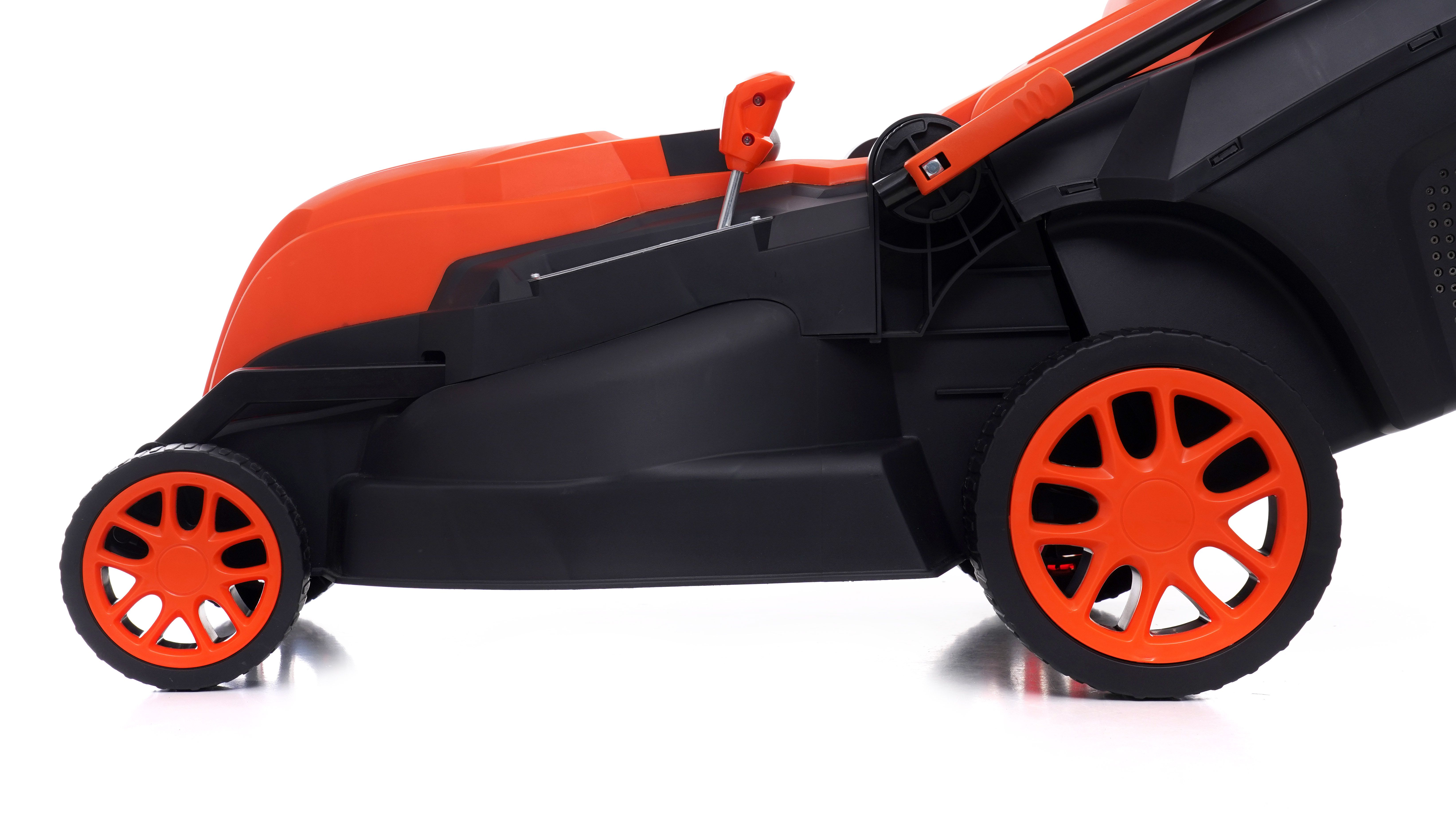 Mniejsze zmęczenie podczas prowadzenia kosiarki i łatwiejsze manewrowanie przy rabatach oraz w węższych miejscach.