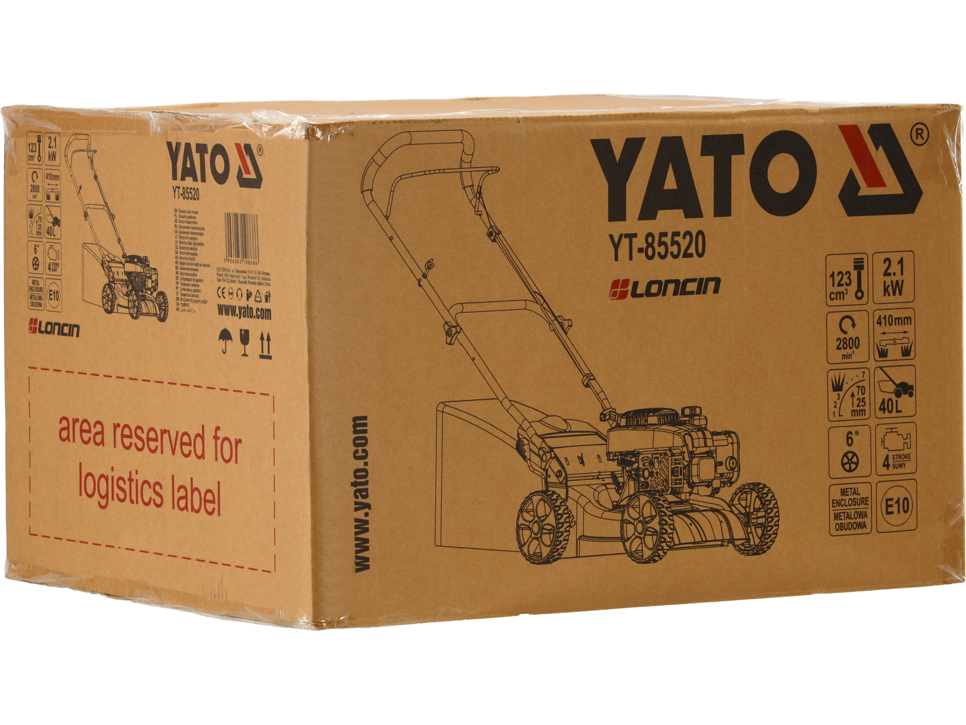 Kosiarka spalinowa z silnikiem LONCIN LC1P65FE-3 o pojemności 123 cm³ i mocy 2,1 kW. Model bez napędu na koła, przeznaczony do koszenia małych i średnich trawników o powierzchni do 500 m². Szerokość robocza 41 cm zapewnia manewrowość na terenach z przeszkodami.