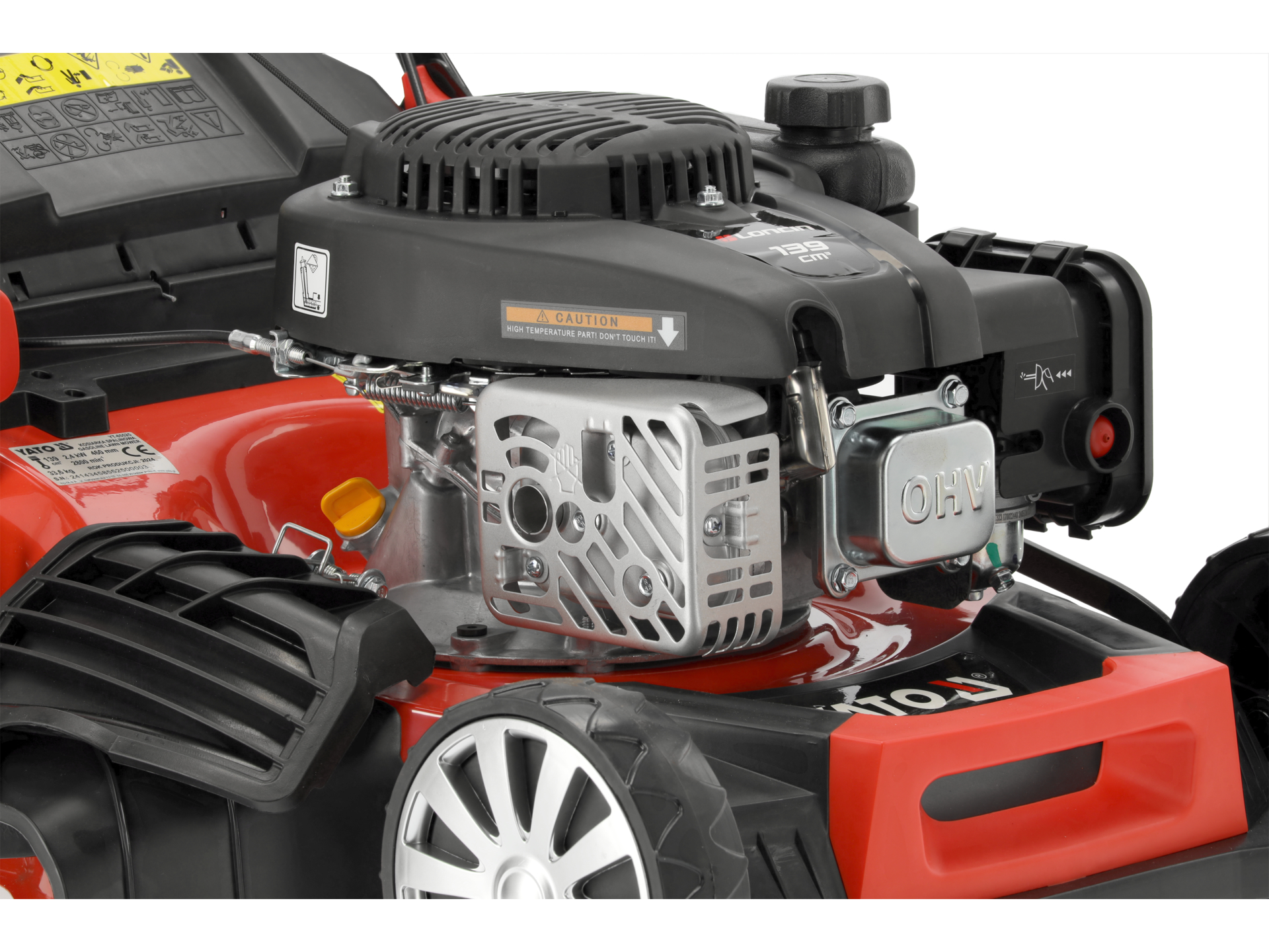Kosiarka wyposażona jest w system 4 w 1, który obejmuje: wyrzut trawy do kosza, wyrzut za kosiarkę, wyrzut boczny oraz mulczowanie. Opcja mulczowania pozwala na pozostawienie skoszonej trawy na trawniku, gdzie służy ona jako naturalny nawóz.