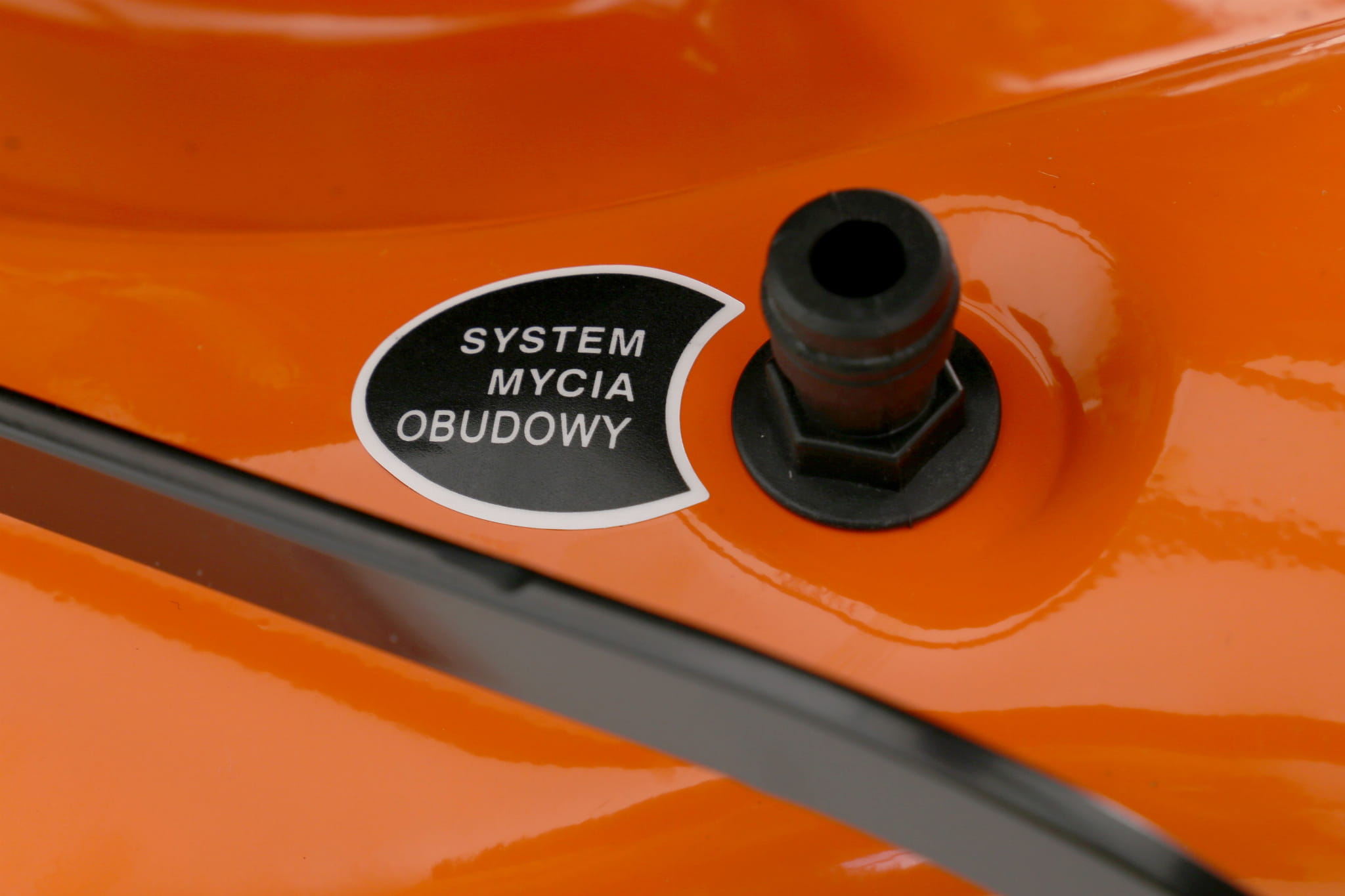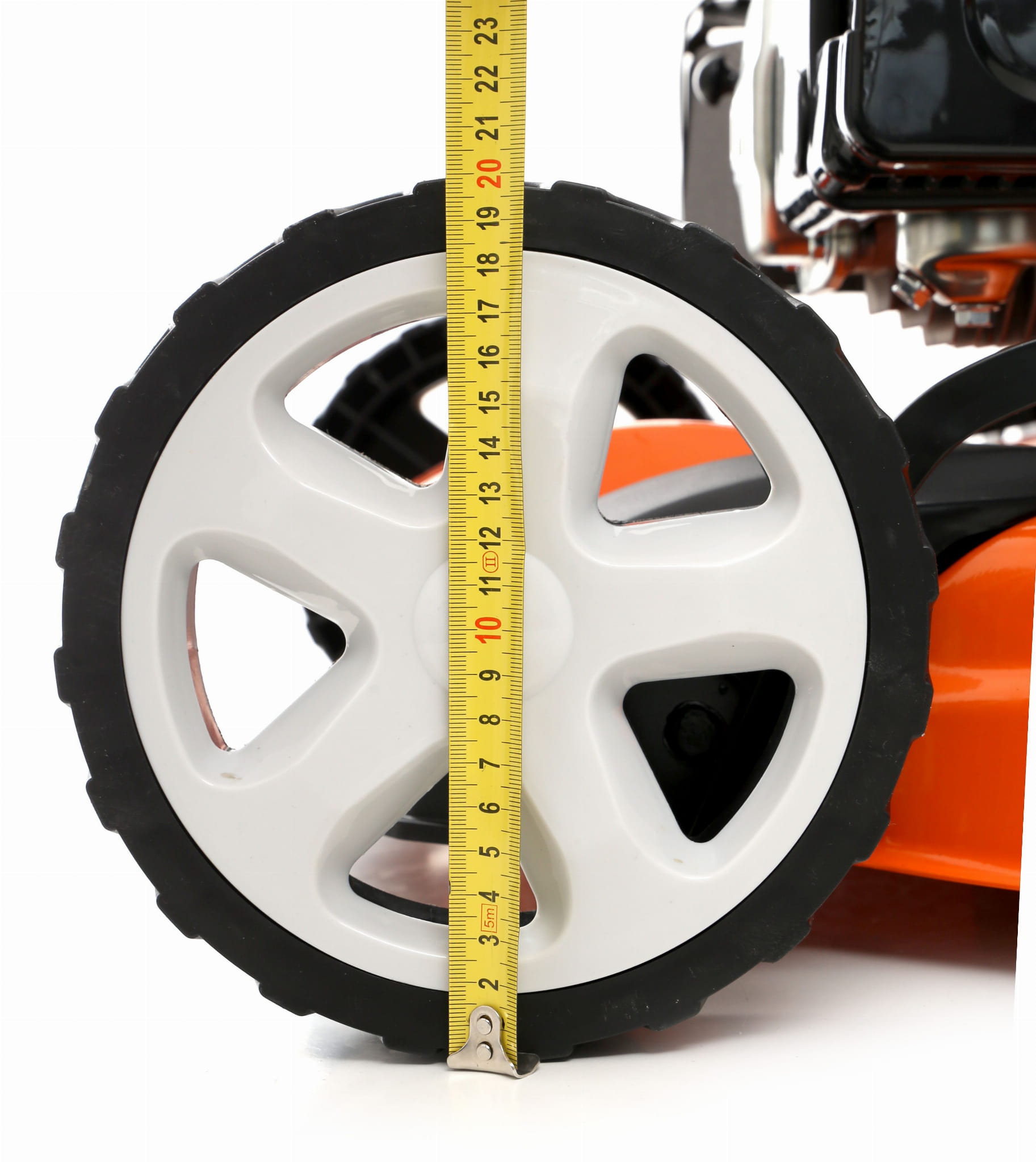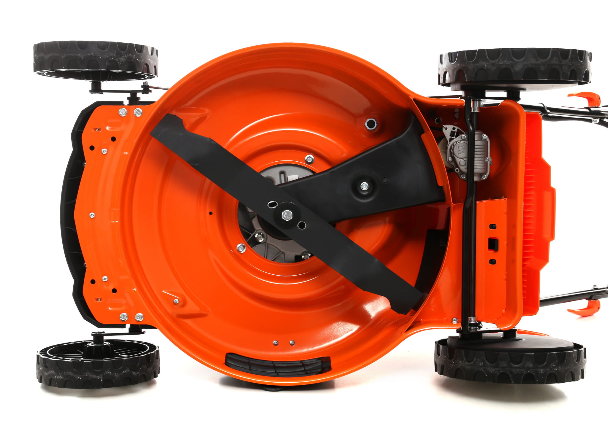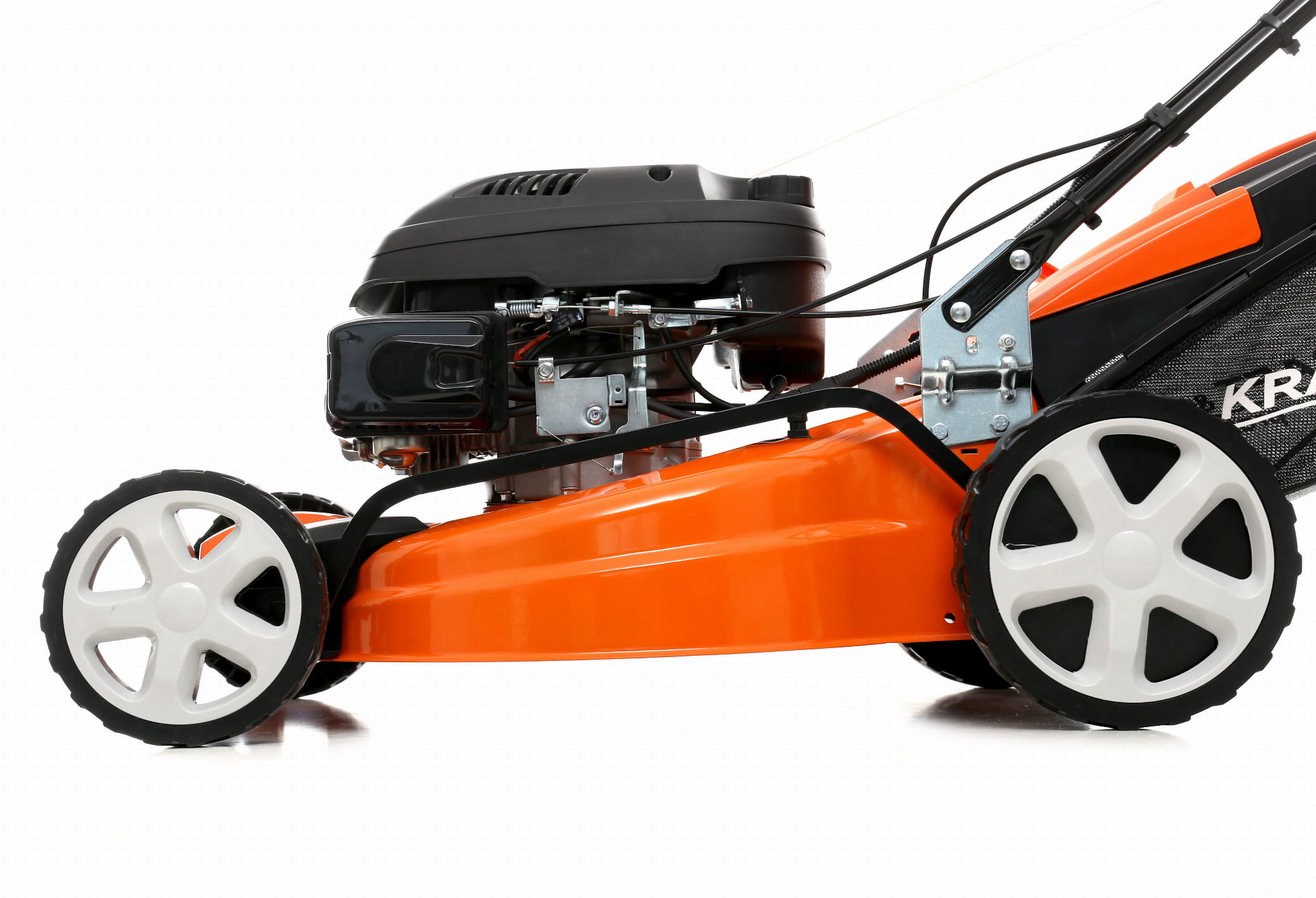 Jednostka spalinowa o pojemności skokowej 173 cc i mocy 6,6 kW pracuje przy prędkości znamionowej 2800 obr/min. Większa pojemność silnika przekłada się na utrzymanie stałej prędkości obrotowej nawet podczas koszenia wysokiej lub wilgotnej trawy, bez przeciążania układu napędowego.