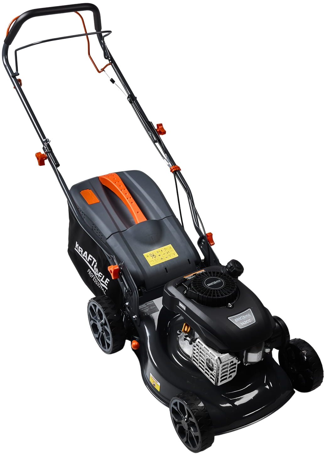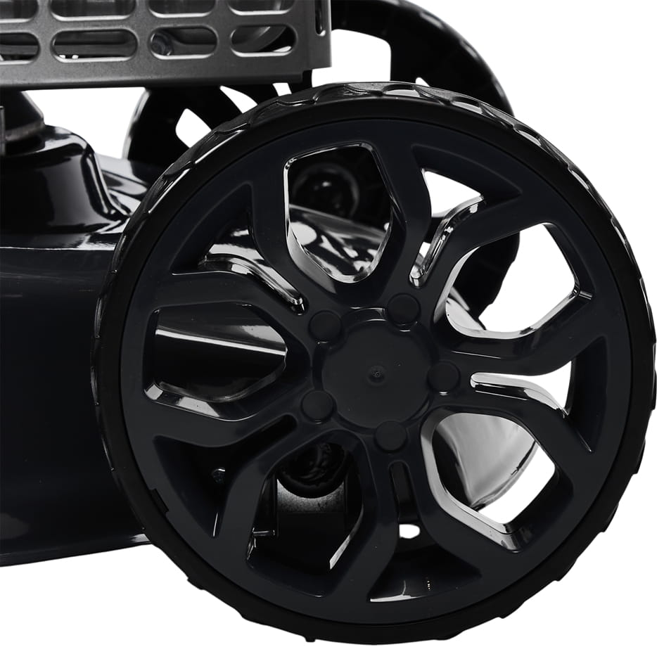 Mechanizm samobieżny z prędkością 3,6 km/h odciąża operatora podczas koszenia, szczególnie na powierzchniach z lekkim nachyleniem lub przy dłuższych sesjach pracy. Kosiarka porusza się samodzielnie — wystarczy utrzymywać kierunek.