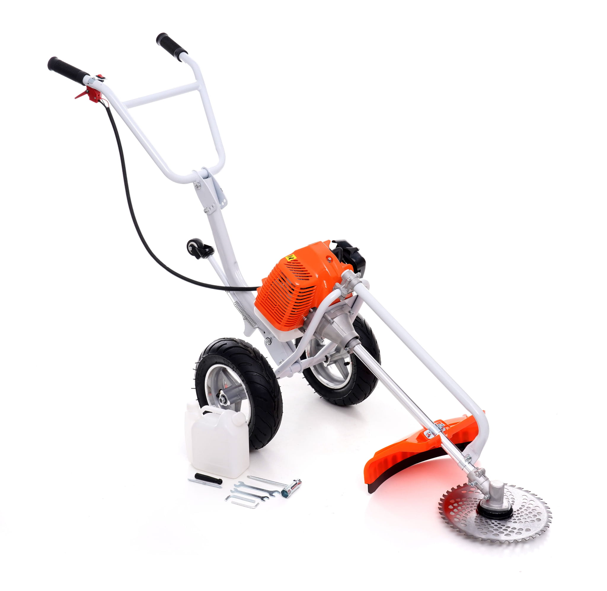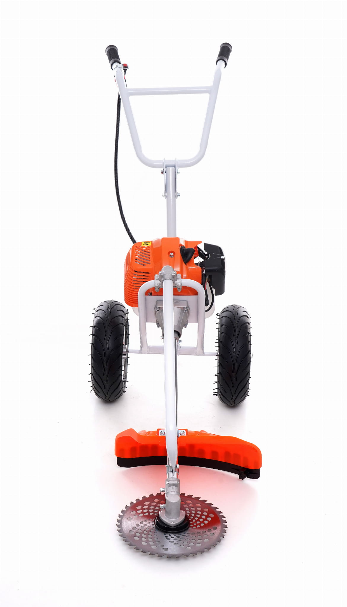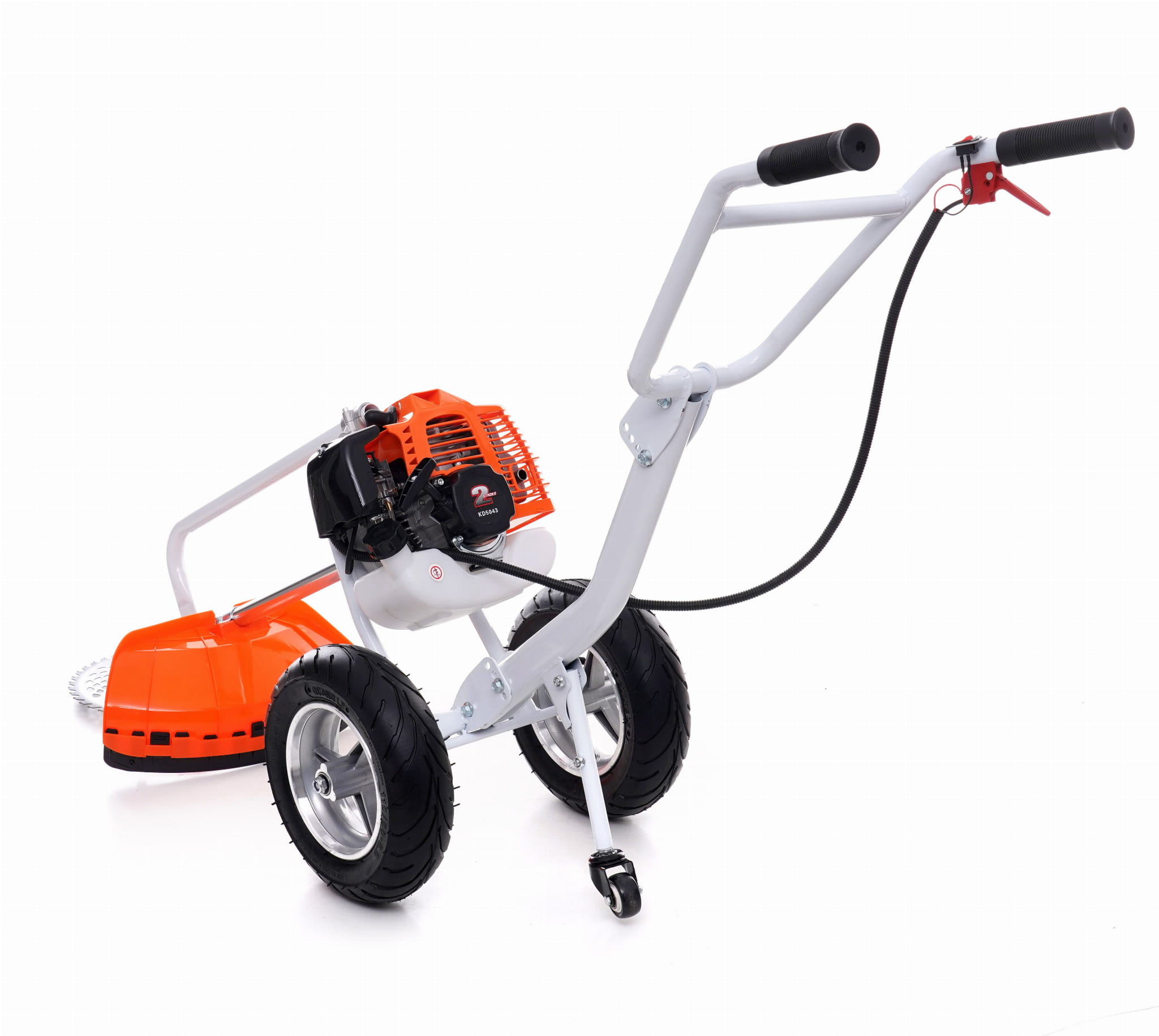 Kółka umożliwiają prowadzenie kosiarki bez konieczności unoszenia urządzenia. Przy wadze ok. 13 kg jest to istotna zaleta podczas pracy na większych powierzchniach lub terenie z nierównościami.