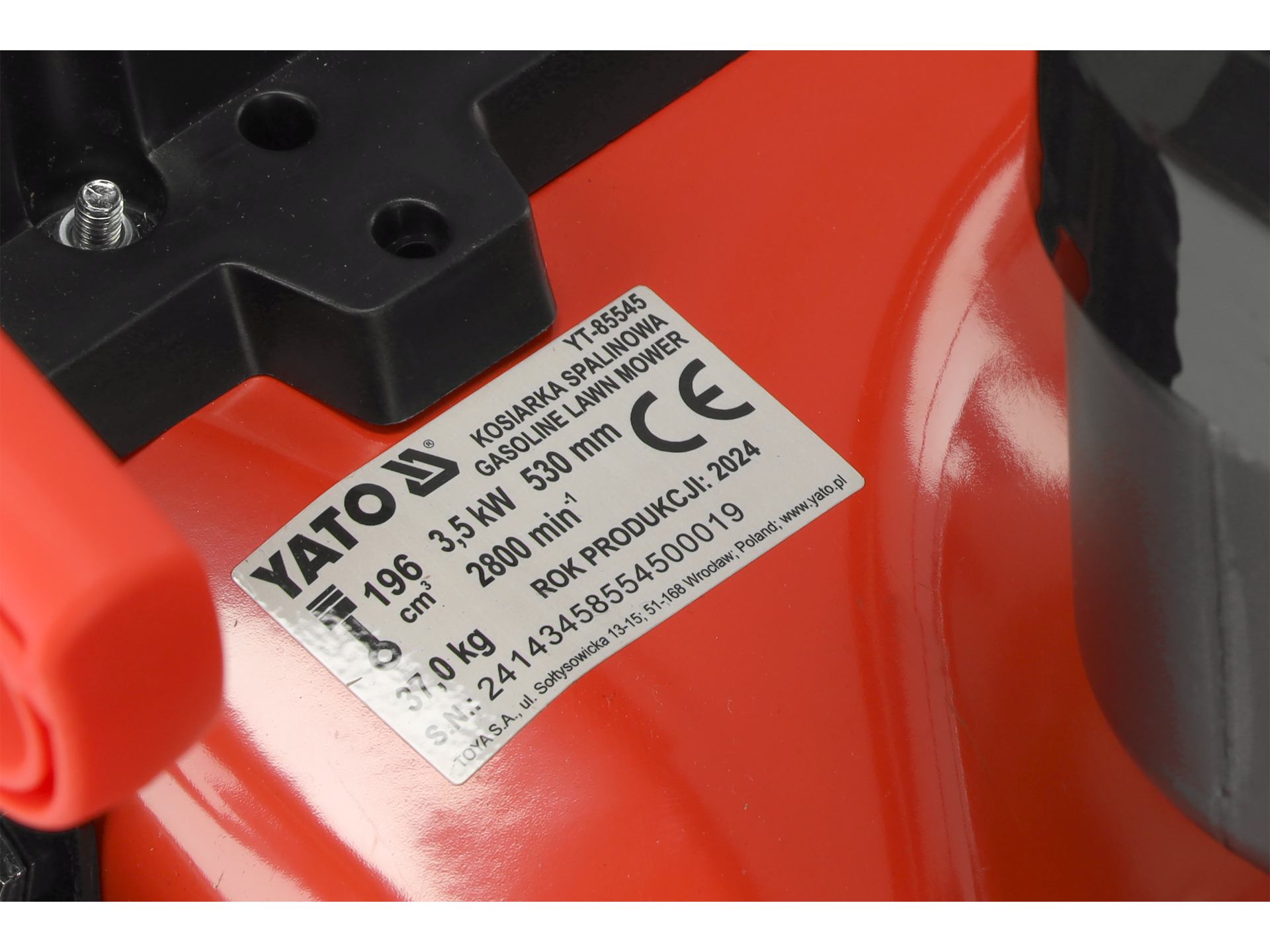 | Regulacja wysokości koszenia | 6-stopniowa centralna, zakres 30-80 mm |