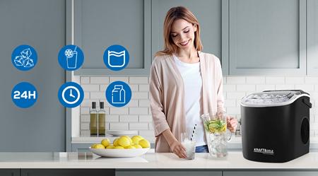KD4124 to kompaktowa kostkarka blokowa przeznaczona do użytku domowego i biurowego. Urządzenie wytwarza kostki lodu bez potrzeby podłączenia do instalacji wodnej – wystarczy napełnić zbiornik o pojemności 1,2 litra i uruchomić cykl produkcji. Czynnik chłodniczy R600a oraz zestaw czujników automatyzujących pracę urządzenia to elementy charakterystyczne dla tej klasy sprzętu.