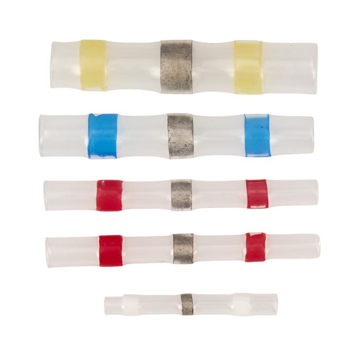 Koszulki termokurczliwe z wbudowanym pierścieniem lutowniczym (cyną) przeznaczone do trwałego łączenia i naprawy przewodów elektrycznych. Zestaw zawiera cztery rozmiary dopasowane do przekrojów żył od 0,25 do 6 mm², co pozwala na pracę z szerokim zakresem przewodów bez konieczności stosowania dodatkowej izolacji po wykonaniu połączenia.
