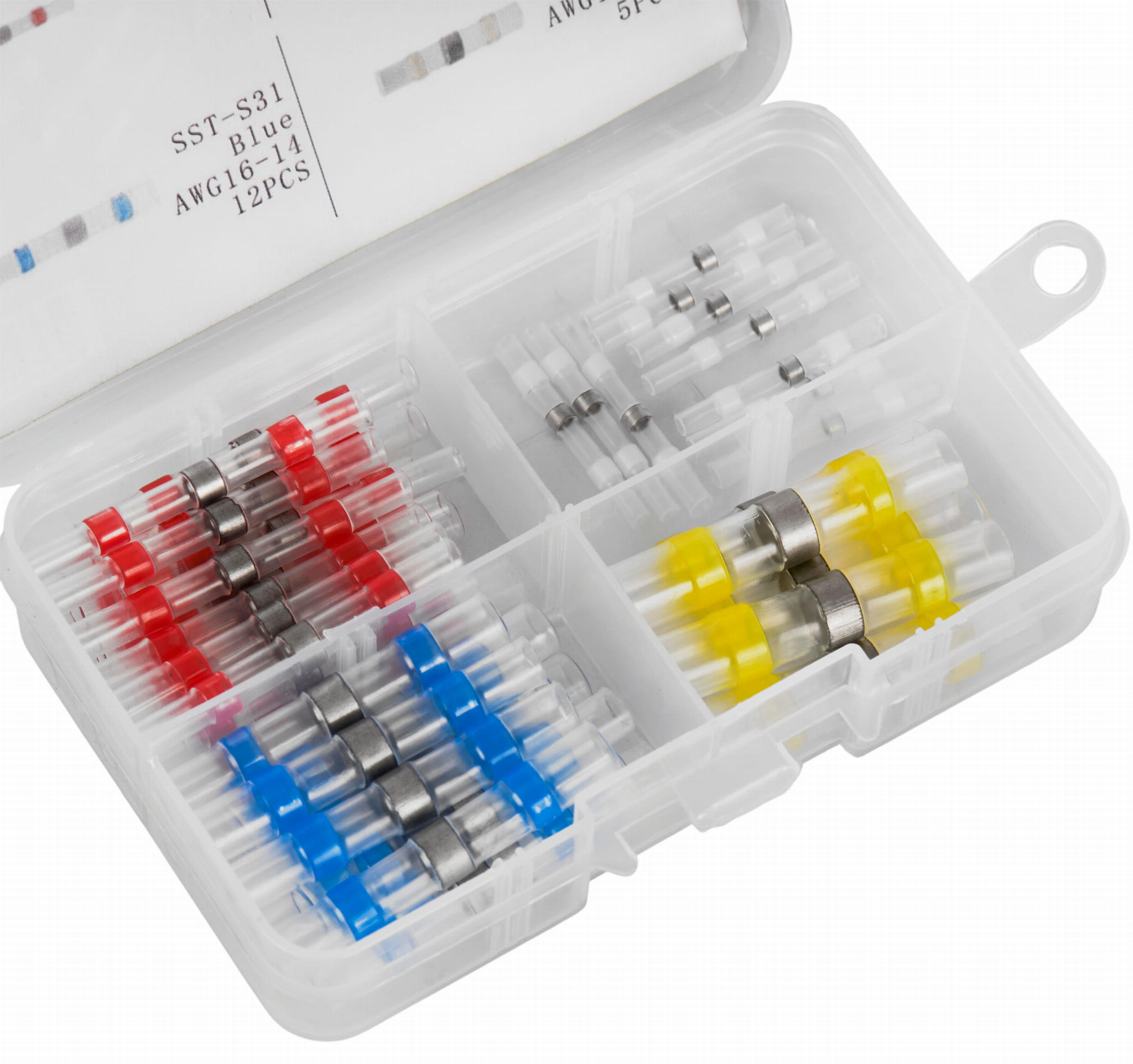 Każda koszulka zawiera pierścień cynowy umieszczony wewnątrz rurki. Pod wpływem temperatury cyna topi się i trwale łączy żyły przewodów, zapewniając niską rezystancję styku bez konieczności użycia lutownicy.