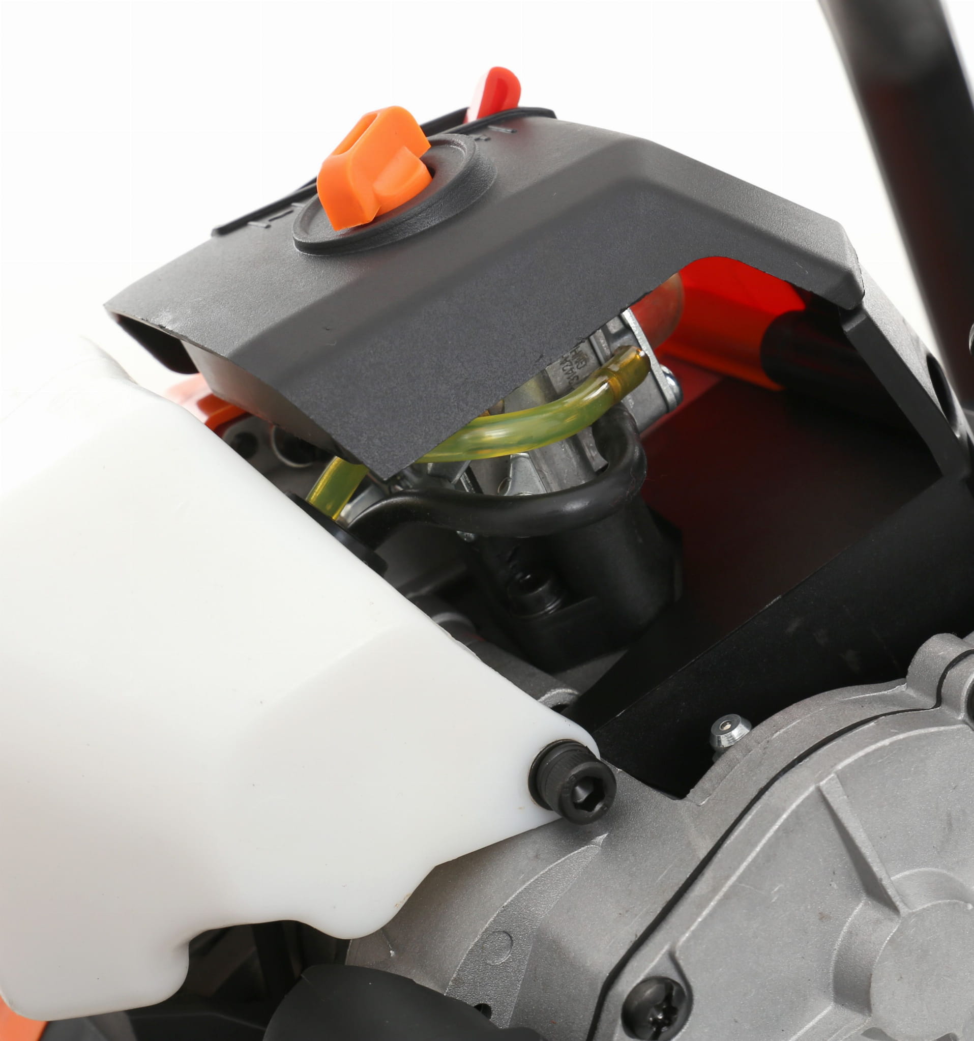 Jednostka napędowa chłodzona powietrzem pracuje do 7000 obr/min. Silniki 2-suwowe tej klasy pojemnościowej charakteryzują się korzystnym stosunkiem mocy do masy — przekłada się to na mniejsze zmęczenie podczas dłuższej pracy. Zbiornik paliwa o pojemności 320 ml ogranicza liczbę przerw na uzupełnianie mieszanki.