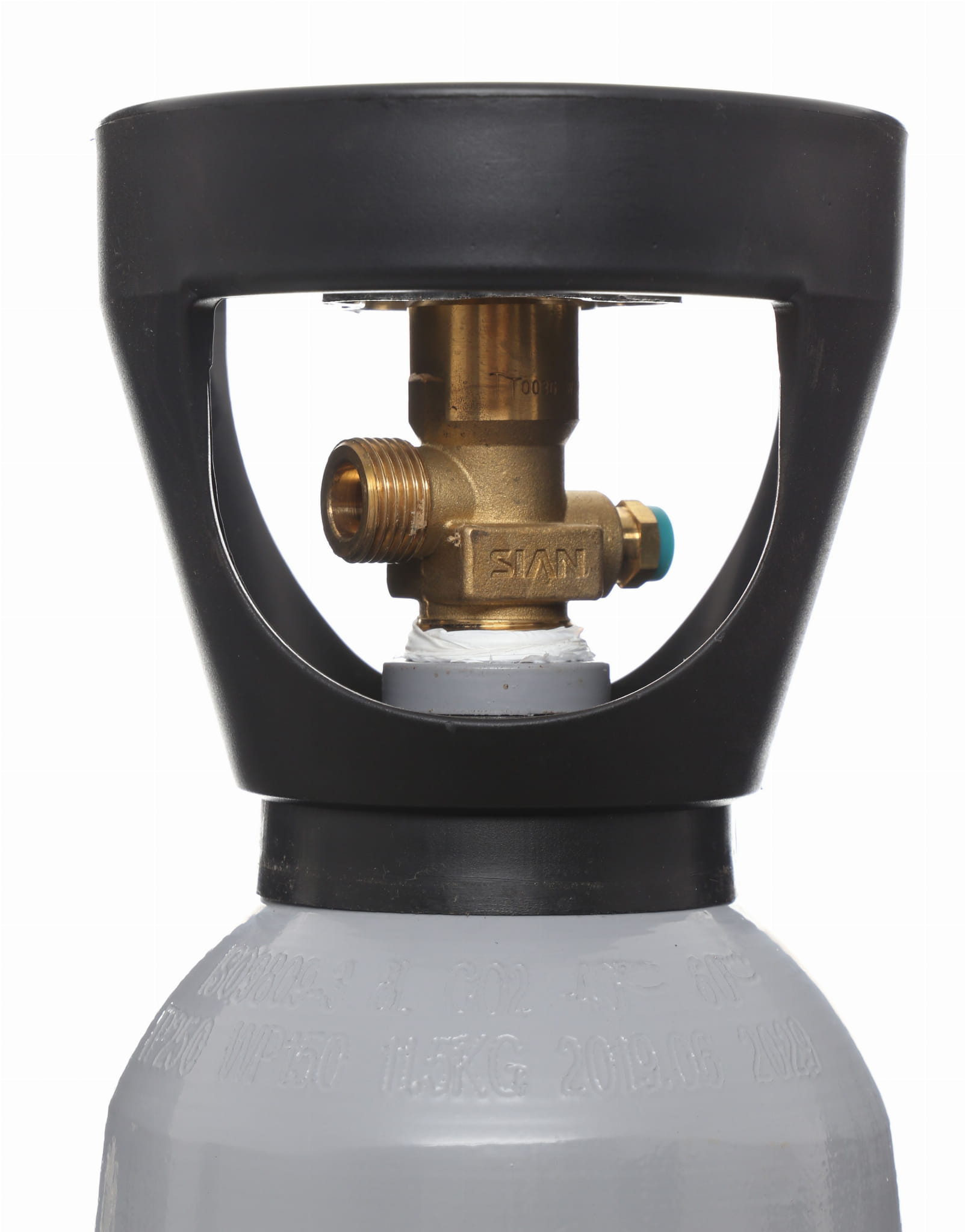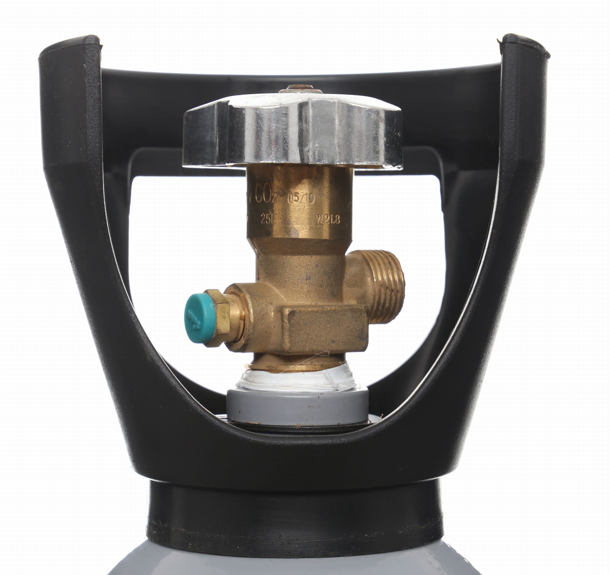 Solidna pokrywa (kołnierz) osłaniająca zawór zabezpiecza go przed uszkodzeniem podczas transportu i przechowywania. Uszkodzony zawór w butli pod ciśnieniem stanowi poważne zagrożenie — jego ochrona to element bezpieczeństwa, nie tylko komfort.