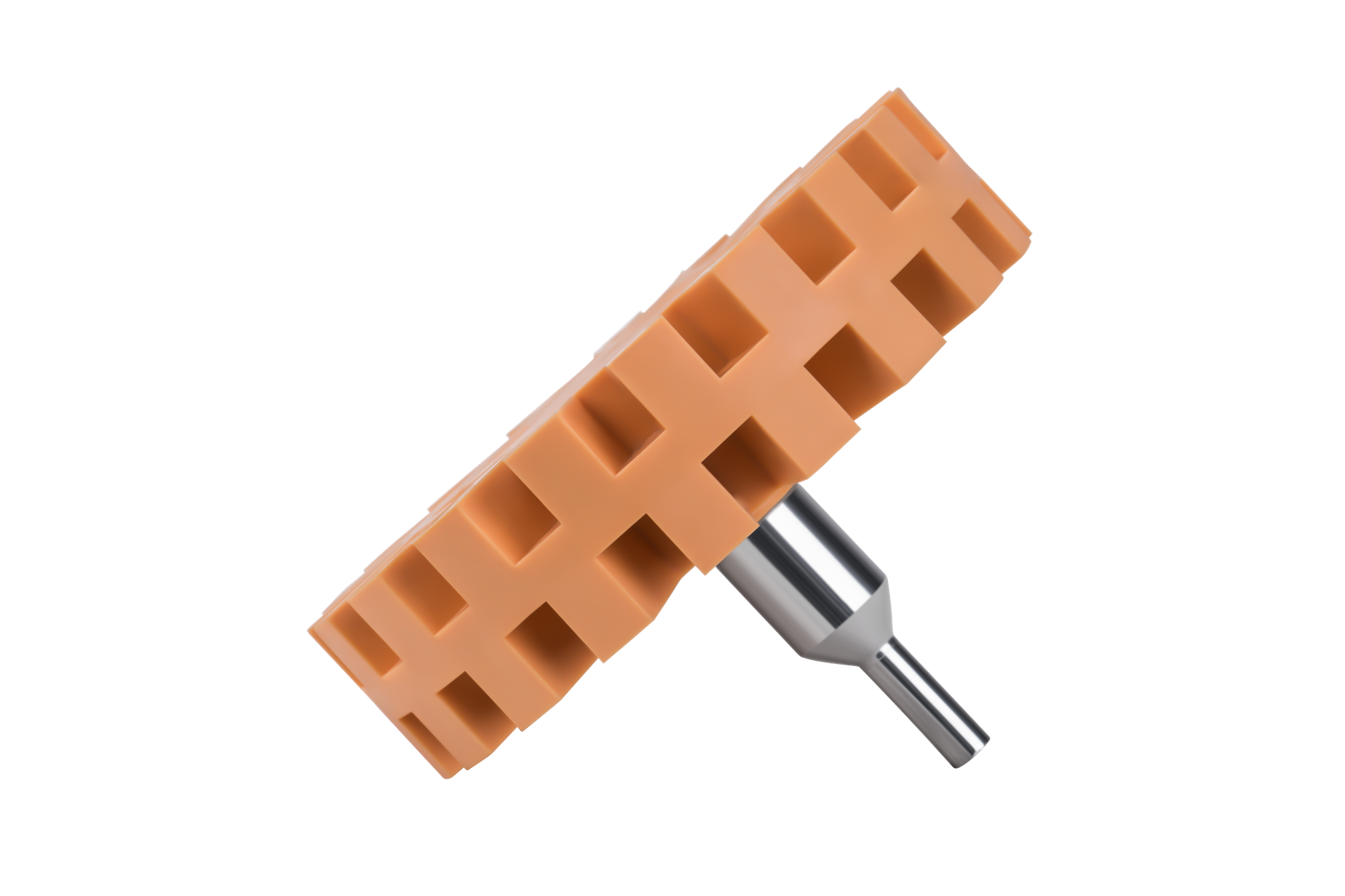 Gwint M8 umożliwia bezpośrednie wkręcenie krążka w uchwyt wiertarki elektrycznej lub pneumatycznej. Nie wymaga adaptera — wystarczy standardowy uchwyt z możliwością montażu trzpienia M8.