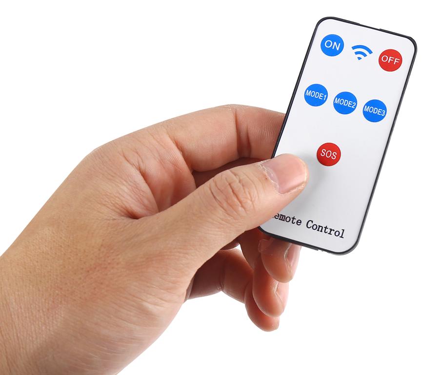 Sterowanie trybami odbywa się za pomocą dołączonego pilota. Wybór trybu wpływa bezpośrednio na czas pracy lampy na jednym ładowaniu akumulatora.