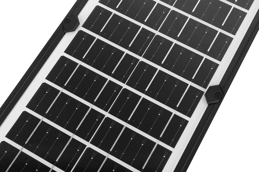 Wbudowany panel fotowoltaiczny ładuje akumulator w ciągu dnia, dzięki czemu lampa pracuje po zmroku bez podłączenia do sieci. Rozwiązanie eliminuje koszty eksploatacyjne i umożliwia montaż w miejscach bez dostępu do instalacji elektrycznej.
