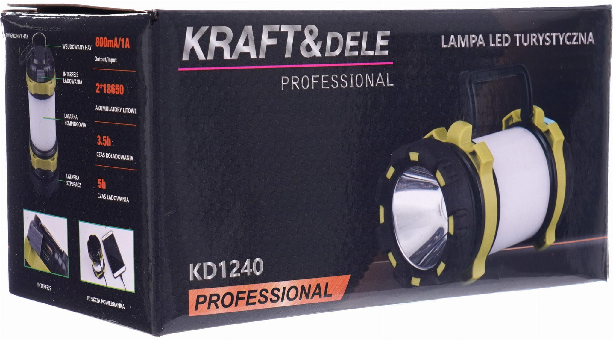 KD1240 marki KRAFT&DELE to wielofunkcyjne urządzenie oświetleniowe łączące trzy niezależne systemy diod: szperacz dalekiego zasięgu, lampę rozproszoną do oświetlania przestrzeni oraz tryb sygnalizacyjny czerwony. Wbudowany akumulator 3000 mAh umożliwia dodatkowo ładowanie urządzeń mobilnych przez port USB.