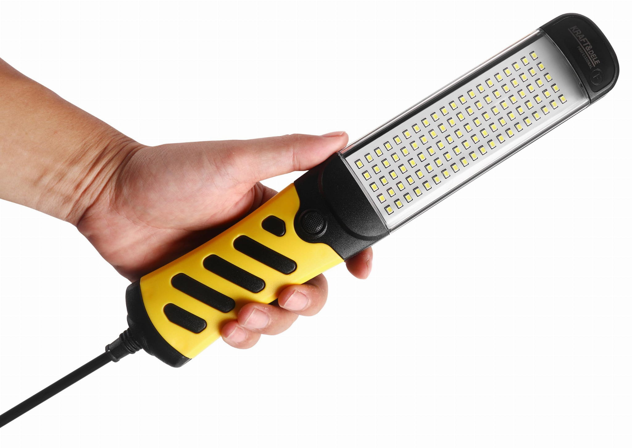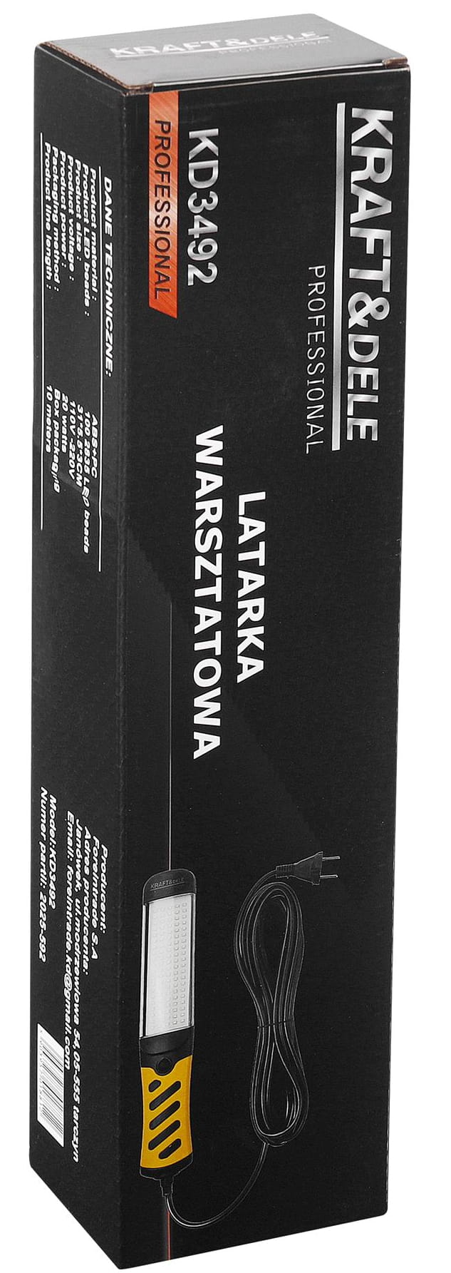 Lampa warsztatowa KD3492 to sieciowe źródło światła roboczego przeznaczone do użytku w garażu, warsztacie mechanicznym i na budowie. Wyposażona w 100 diod LED 2835 o łącznej mocy 20W zapewnia równomierne, szerokie oświetlenie obszaru pracy, eliminując konieczność stosowania dodatkowych źródeł światła.
