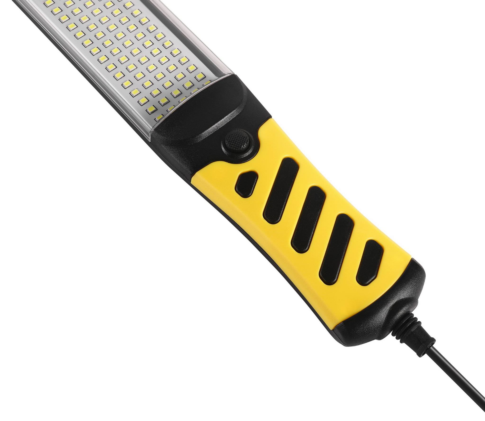 Długość kabla zasilającego wynosząca 10 m pozwala na swobodne przemieszczanie lampy w obrębie warsztatu lub garażu bez konieczności stosowania przedłużaczy. Umożliwia dotarcie do trudno dostępnych miejsc — pod pojazdem, wewnątrz komory silnikowej czy w głębi szafy instalacyjnej.
