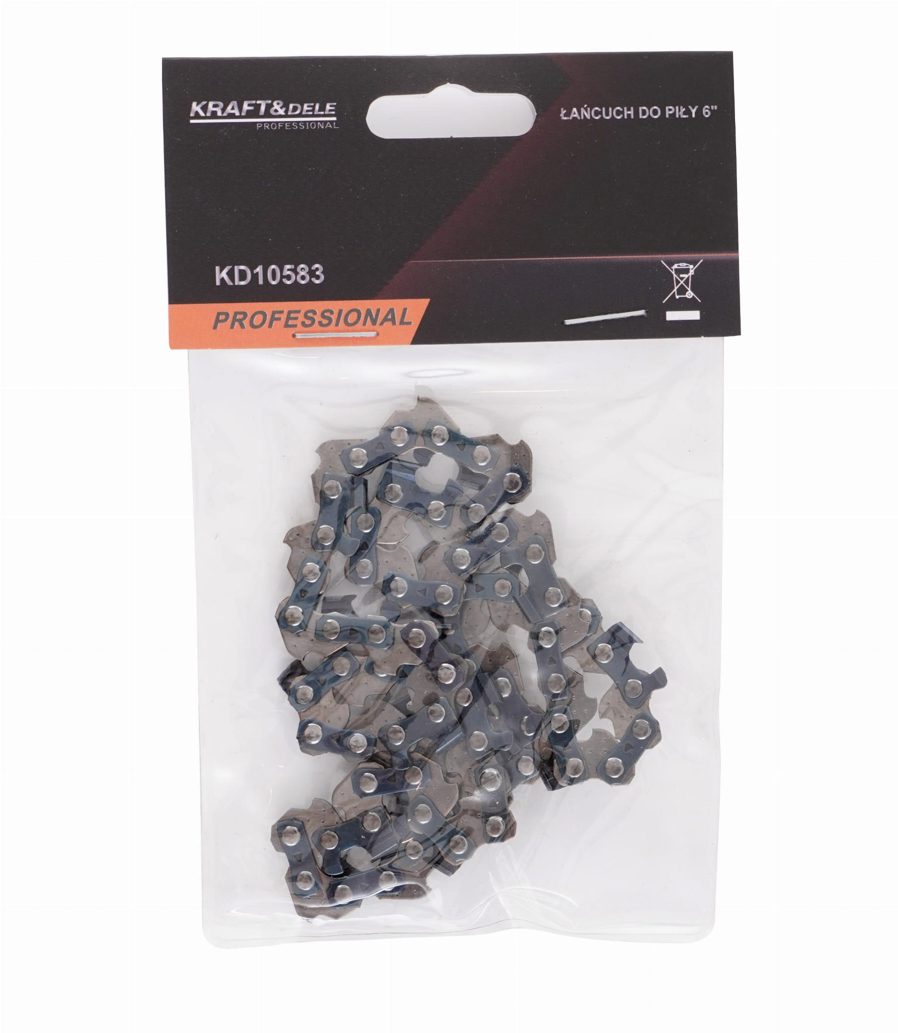 Trzy parametry muszą być zgodne z prowadnicą i kołem napędowym piły: rozmiar prowadnicy (6"), skok łańcucha (1/4") oraz szerokość rowka prowadnicy (1,1 mm). Łańcuch KD10583 jest potwierdzony jako zamienny do piły akumulatorowej Kraft&Dele KD10623. W przypadku innych modeli należy zweryfikować wszystkie trzy wartości przed montażem.