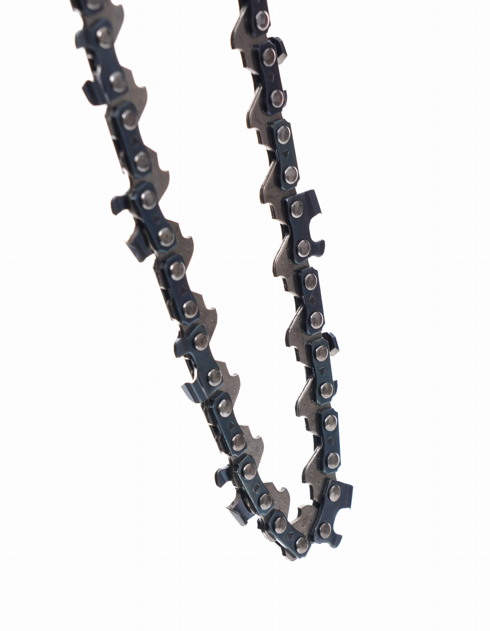 Konstrukcja łańcucha ogranicza ryzyko efektu kickback, czyli gwałtownego odrzutu piły podczas kontaktu końca prowadnicy z materiałem. Jest to istotny element bezpieczeństwa pracy.