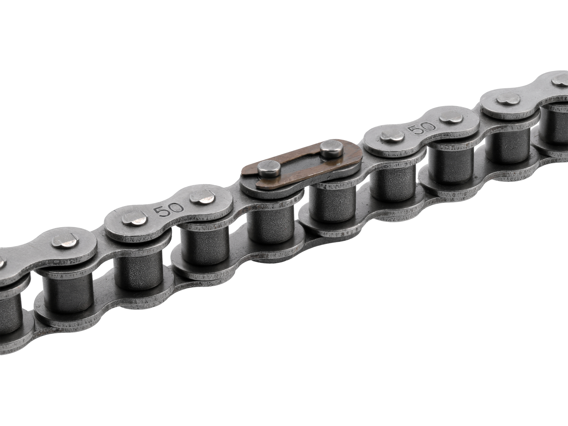 Płytki ogniw wykonane ze stali węglowej o zwiększonej wytrzymałości na rozciąganie. Rolki i tuleje hartowane powierzchniowo dla zwiększenia odporności na ścieranie w miejscach kontaktu z zębami kół napędowych.