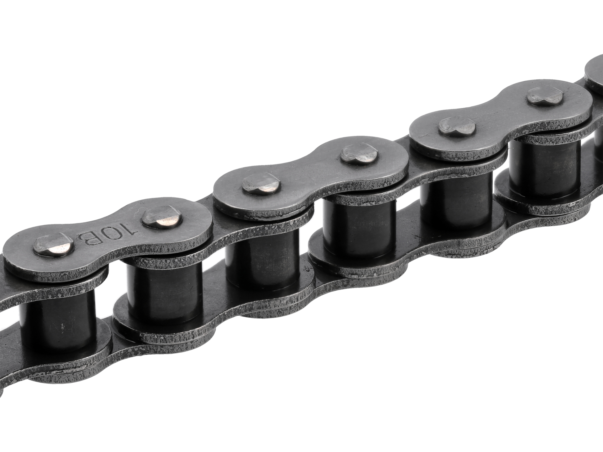 Oznaczenie 10B określa skok łańcucha (15,875 mm) zgodny z normą ISO 606. Liczba 84 oznacza ilość ogniw w łańcuchu. Konstrukcja tulejkowa charakteryzuje się obecnością tulei między sworzeń a rolką, co redukuje tarcie i zwiększa trwałość podczas pracy pod obciążeniem.