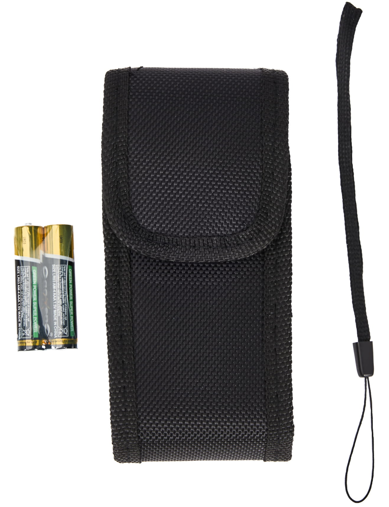 Dalmierz laserowy KD10405, pokrowiec ochronny, smycz, 2 baterie AAA, instrukcja obsługi w języku polskim, oryginalne opakowanie.