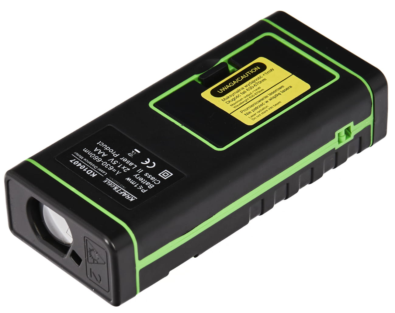 KD10407 to laserowy miernik odległości z zasięgiem do 80 m, umożliwiający bezpośredni pomiar odległości, a także obliczanie powierzchni i objętości. Urządzenie obsługuje funkcje matematyczne oparte na twierdzeniu Pitagorasa oraz działa w zakresie temperatur od –10°C do 50°C, co pozwala na użytkowanie zarówno wewnątrz budynków, jak i na zewnątrz.