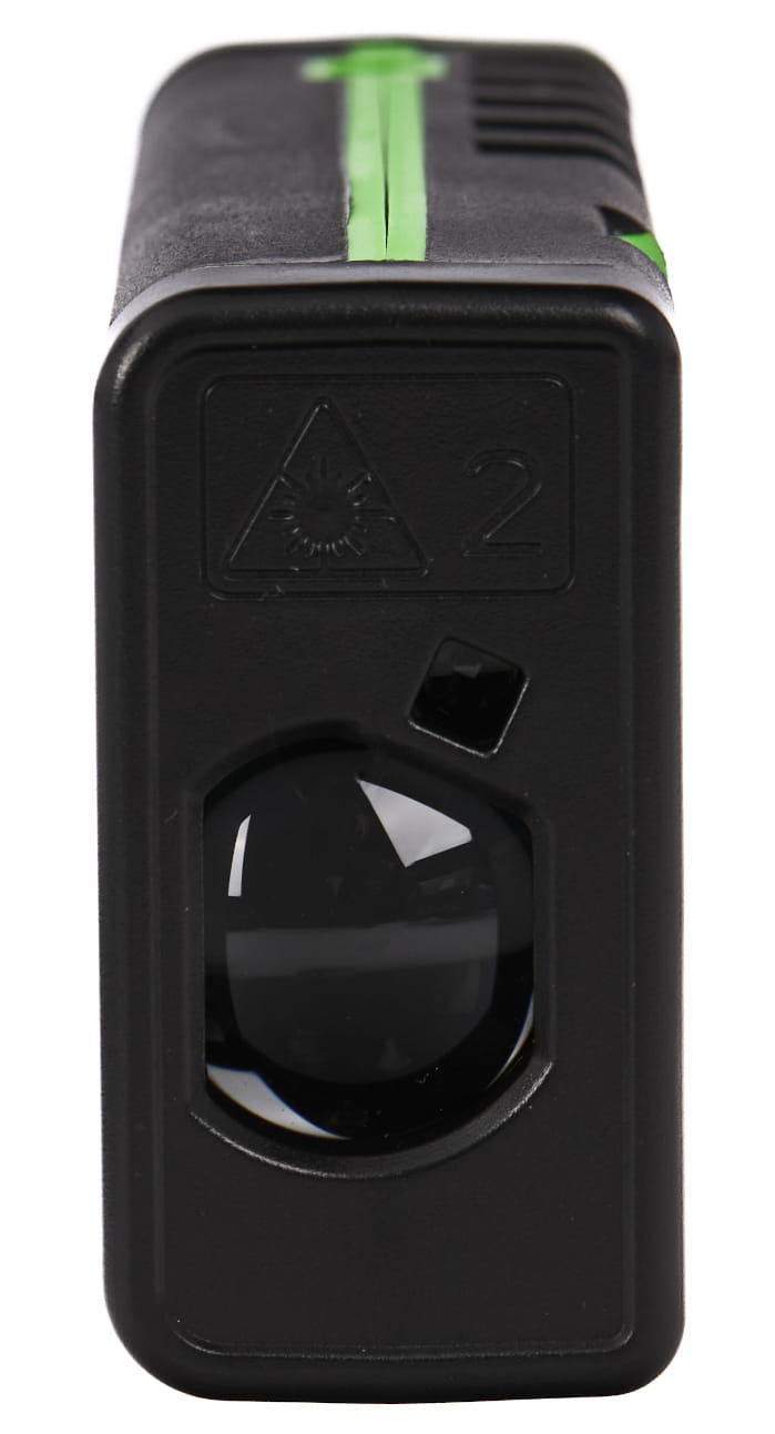Laser klasy II o mocy poniżej 1 mW i długości fali 635 nm (czerwony) jest bezpieczny przy normalnym użytkowaniu — naturalny odruch mrugania chroni oko przed przypadkową ekspozycją. Nie należy jednak celowo wpatrywać się w wiązkę. Średnica plamki wynosi 8 mm na odległości bliskiej i rośnie do ok. 40 mm na większych dystansach, co wpływa na czytelność punktu docelowego przy dużych odległościach w jasnym oświetleniu.