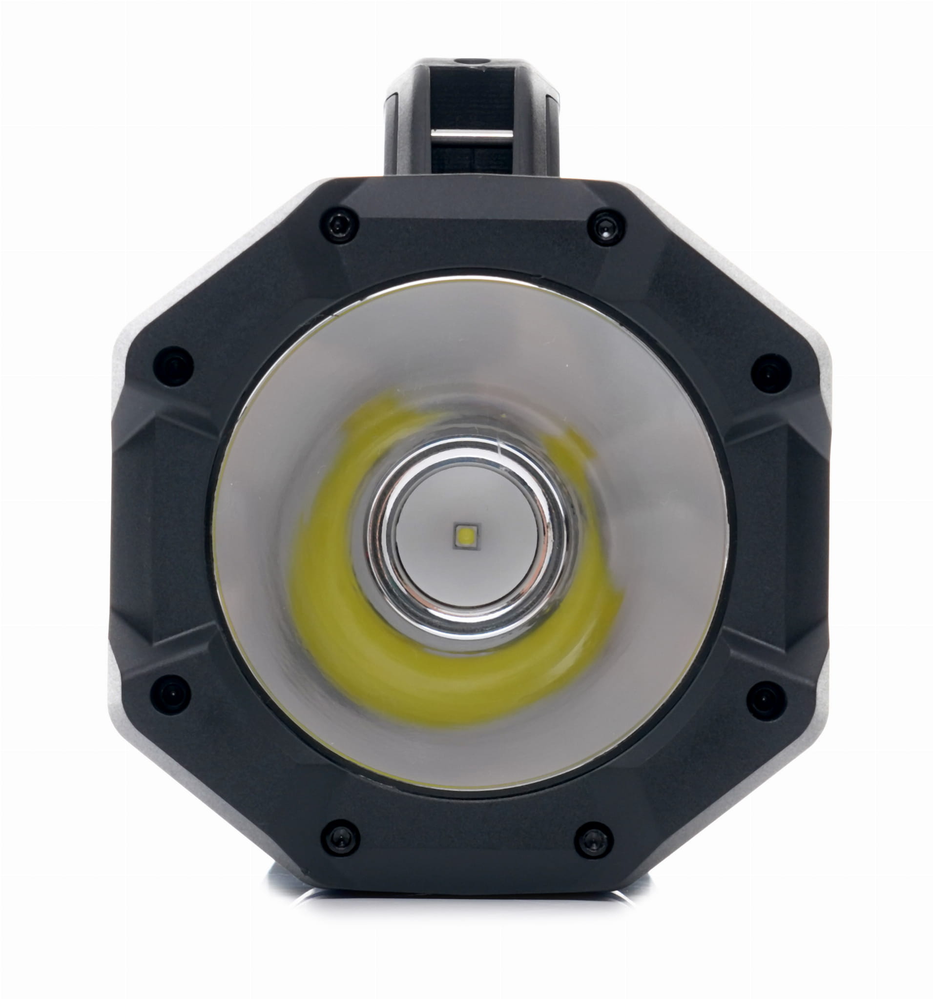 Latarka dysponuje reflektorem punktowym — przydatnym do oświetlania oddalonych obiektów — oraz panelem bocznym emitującym rozproszone światło, które równomiernie oświetla większy obszar wokół użytkownika. Każde z nich pracuje w dwóch poziomach jasności.