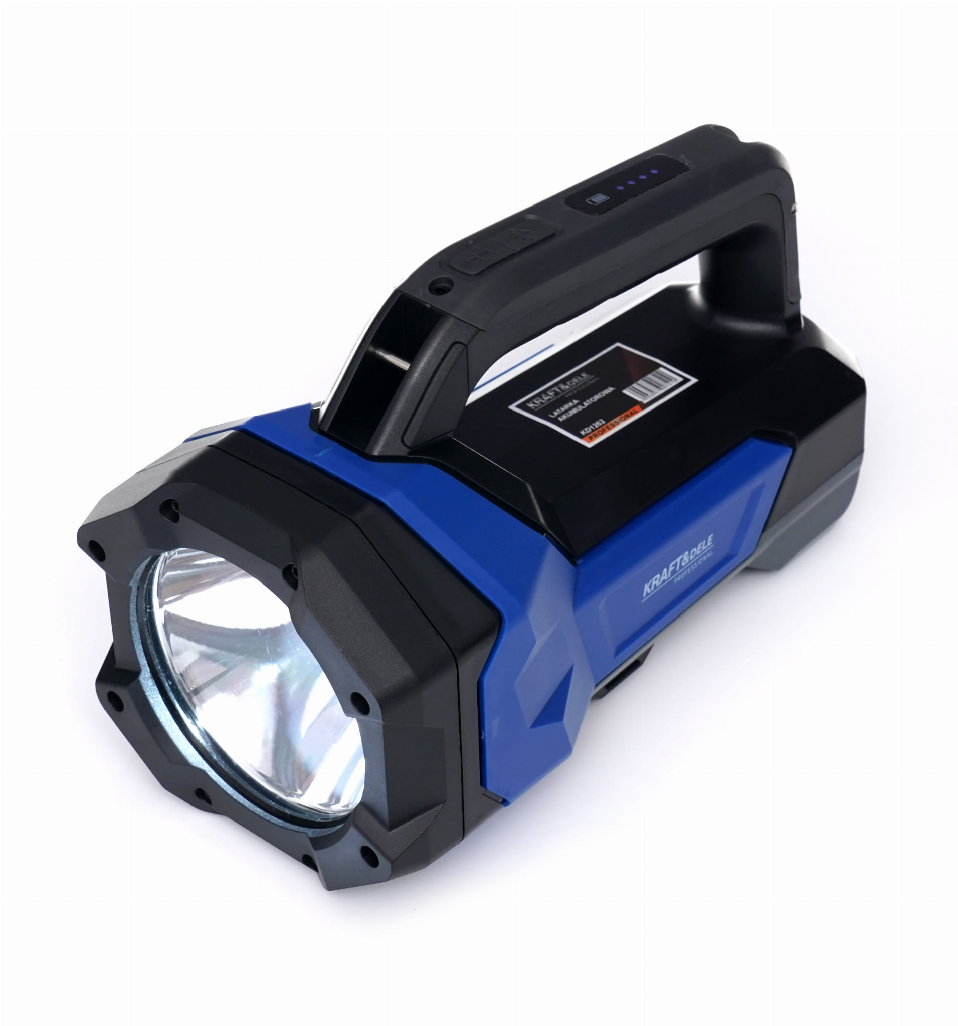 KD1262 to latarka akumulatorowa z dwoma niezależnymi źródłami światła — punktowym (do 1000 lm) i bocznym (do 600 lm) — zasilana wbudowanym akumulatorem 8000 mAh. Przeznaczona do użytku w terenie i w warunkach domowych, z klasą ochrony IP54 zabezpieczającą przed pyłem i zachlapaniem.