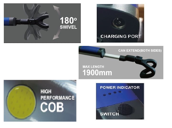 Rozkładany drążek do 190 cm i obrót o 180° pozwalają oświetlić dokładnie to miejsce, którego potrzebujesz.