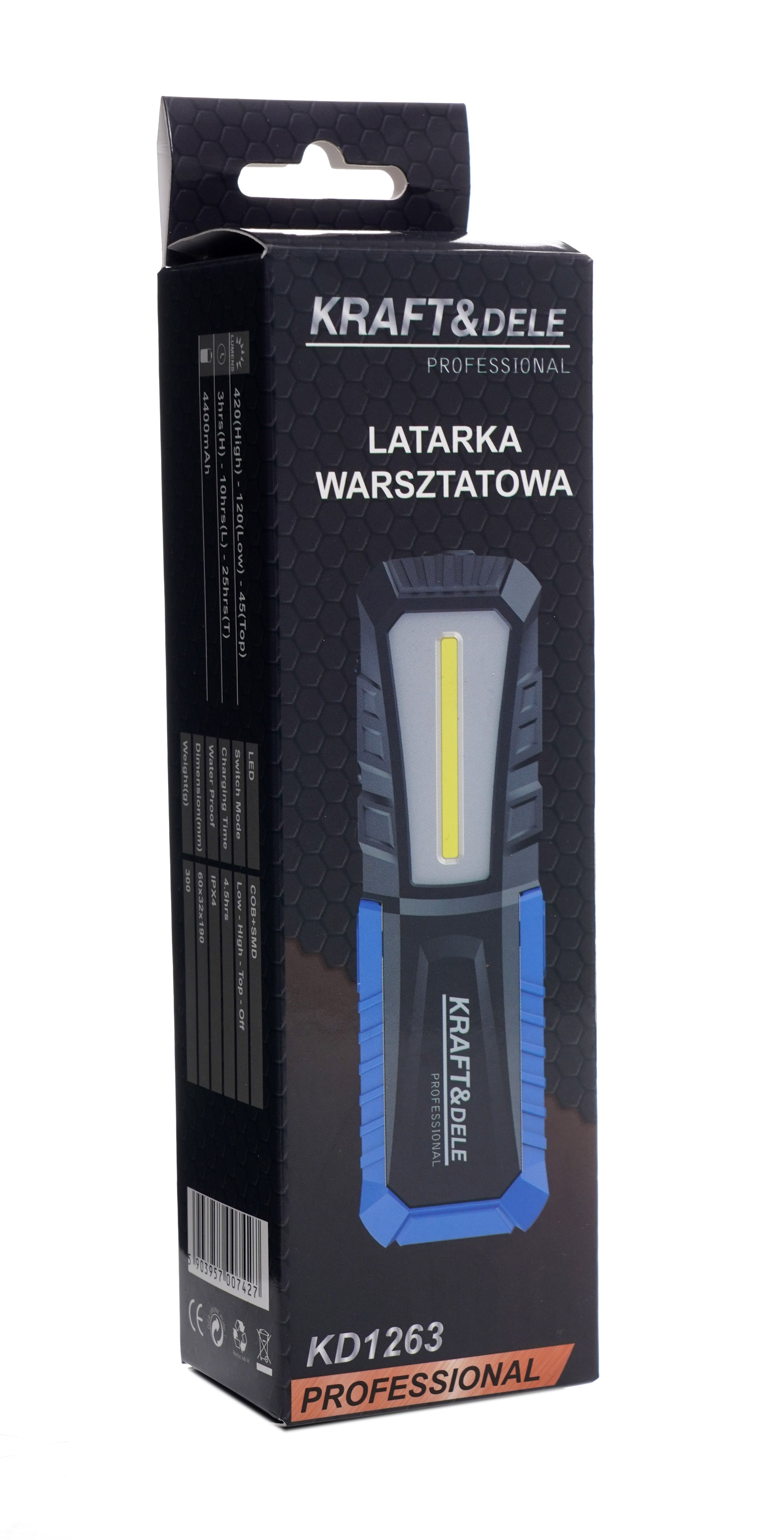 LATARKA WARSZTATOWA 420 Lm KD1263 / KD1263 / KRAFT&DELE to praktyczna latarka warsztatowa do warsztatu, auta i zastosowań w terenie. Model Kraft&Dele KD1263 łączy mocne LED, trzy tryby pracy oraz wygodne mocowanie na magnes i hak, co realnie ułatwia codzienne zadania.